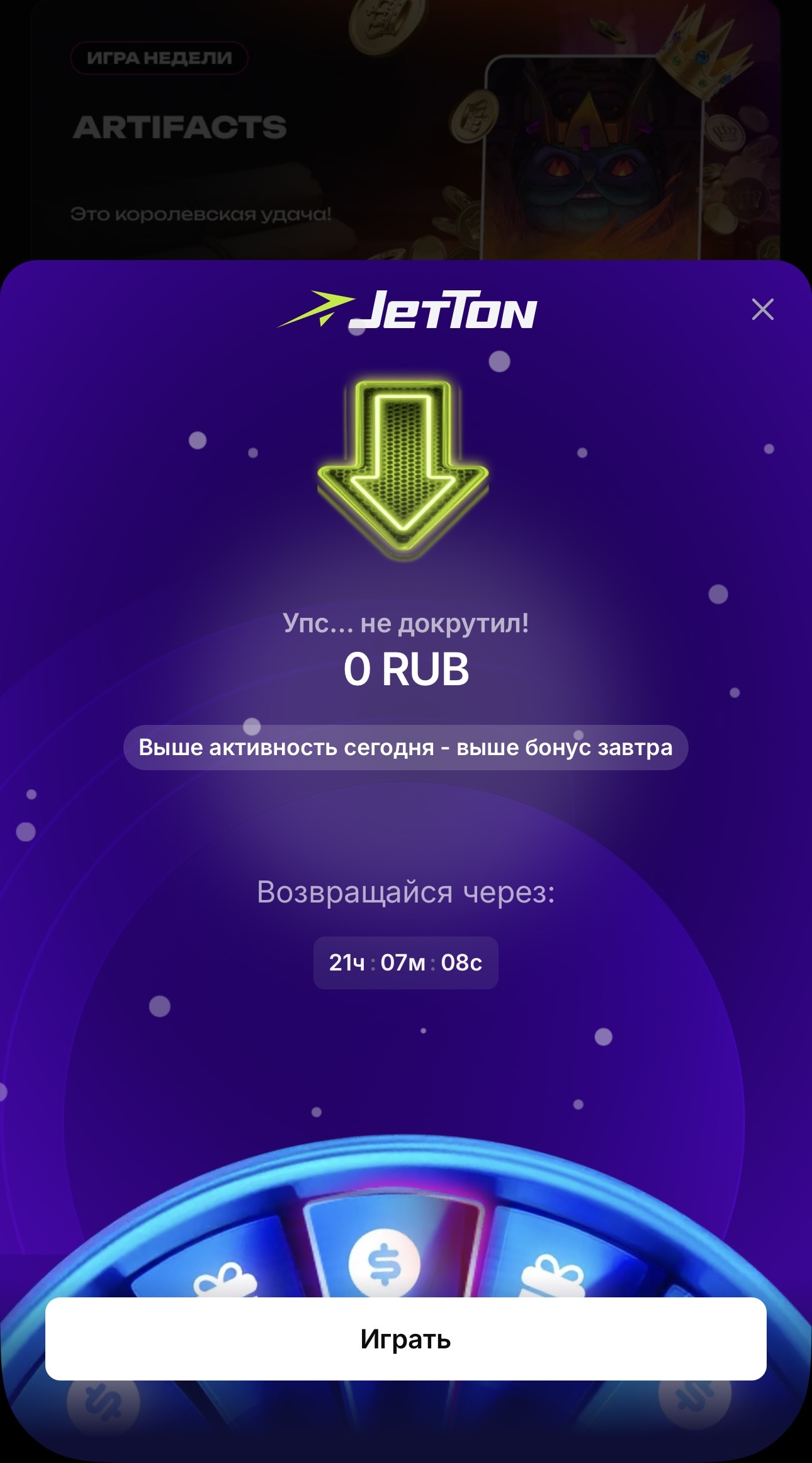 Тоже порожняк. Да, без бонуски даже на номинал не выйти. Может, тогда следующим разом…