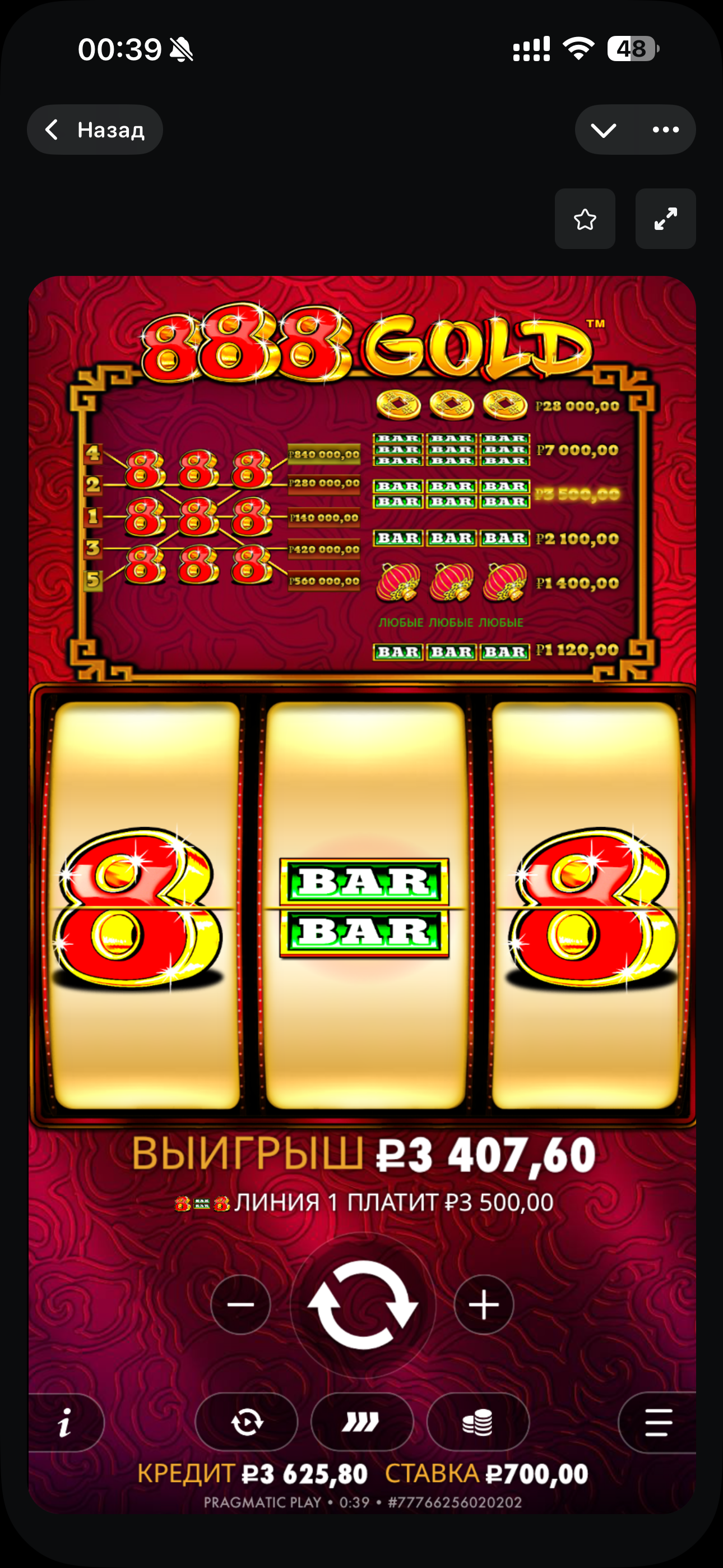 Мне 888 голд не давал никогда даже двух 8. А тут круто