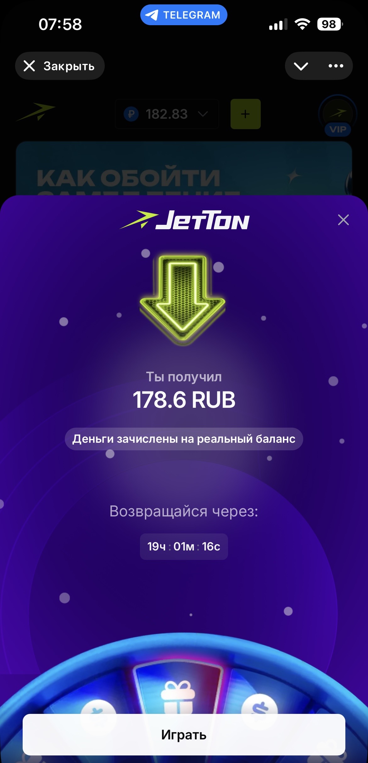 Кароче, ребята, это треш. 500 спинов только открутил. Это 2 часа умчался. Куча ошибок даёт. Слоты, когда обновляешь, он не начисляет бонусные спины, а крутит сам по 2$ за ставку. Кароче, итог какой. 500 спинов дало 60$ и их слило какого-то чуда по 2 $. Каким образом я отыгрываю фс, а у меня крутится реал баланс, я не понимаю. Остаток, который я докрутил, 70 спинов кое-как в районе 20. Это страх и ужас. 60$ просто съело левыми спинами. Даже жалобу скорее не подашь. Админ скажет абуз джеттона) вообще, кроме 25 и 500 спинов, не пришло больше ничего. Лучше бы и эти 500 не приходили. Скрины с этого телефона не грузят. Закину чуть позже с компа.