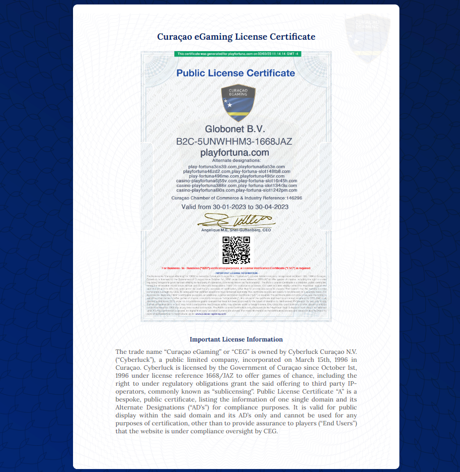 Curaçao.nu специально изучил лицензии, предоставленные Cyberluck и Antillephone в 1996 году, а также лицензии Gaming Curaçao, выданные в 1998 году, и Curaçao Interactive Licensing в 2002 году.
