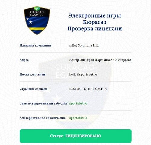 Sportsbet принадлежит и управляется mBet Solutions NV (Schout Bij Nacht Doormanweg 40, PO Box 4745, Curaçao). Меня как то настораживает, что этот сайт лицензируется и регулируется правительством Кюрасао на основании игровой лицензии B2C-GZ29CVGD-668/JAZ.у них лицензия Кюрасао