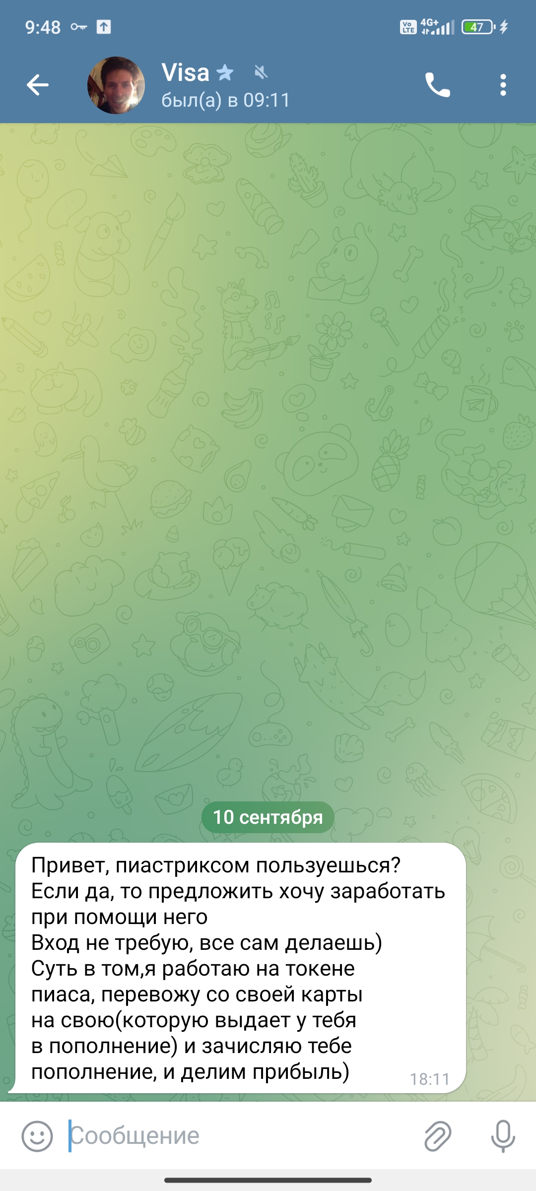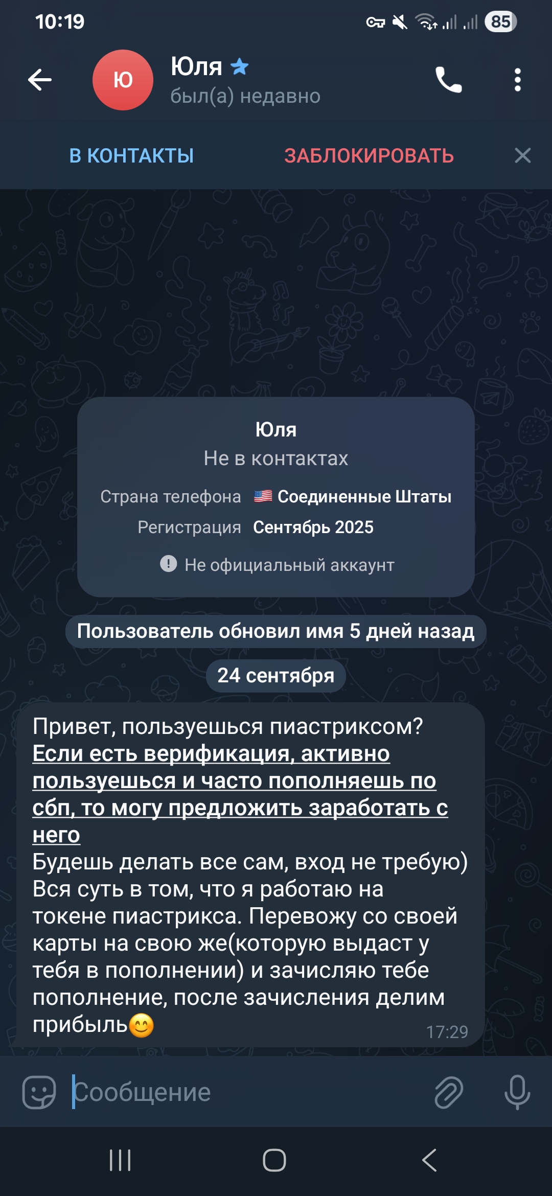 Мошенники они этот Пиастрикс! Удаляю нафиг аккаунт! Хорошо 1к перевод был, а не 10к😡😤Теперь они так и будут блокать всех в подряд, типо чеки какие-то поддельные🤦♀️