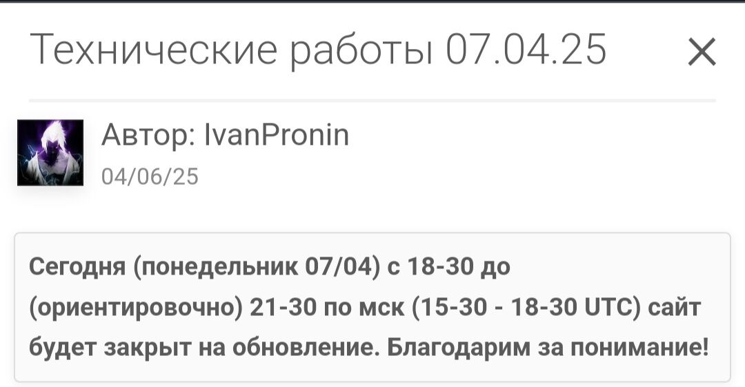 Если так то похоже лучше сегодня приобрести, возможно Слава как раз передаст инфу перед обновлением, техническими работами на форуме к 18:30. Пойду приобрету раз такое дело, вообще хотел от риобета прикупить, но их видать не скоро будет в наличии.
