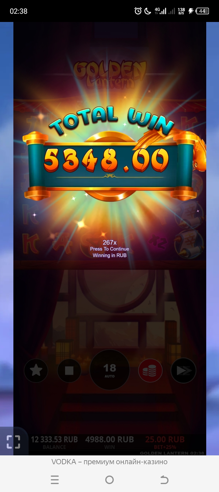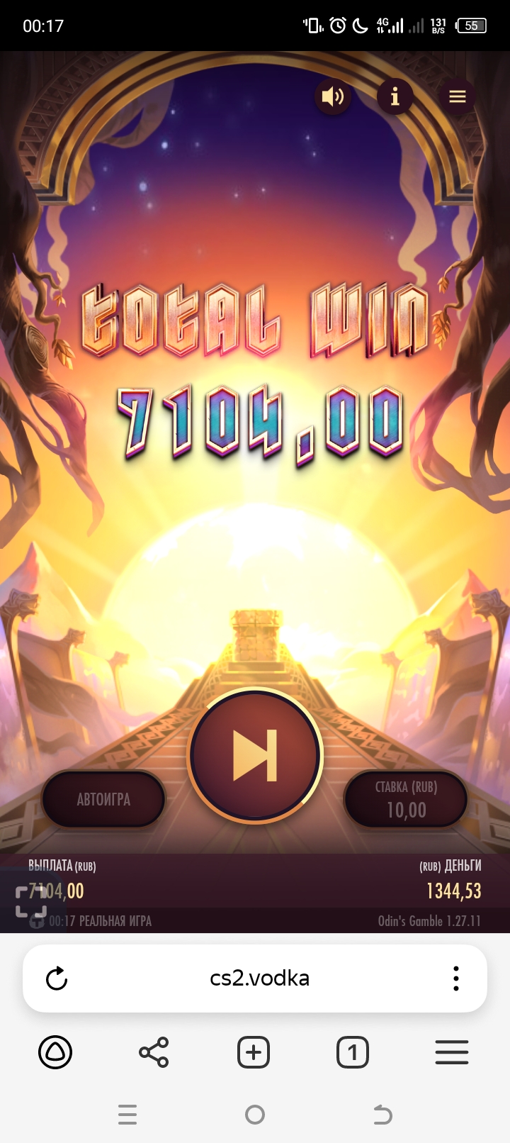 Да, более менее хоть играла водочка, сейчас пару дней ещё поиграет и всё, опять в ноль Ртп скинут! И волатильность опустят так что 1000 руб не выбьешь!
