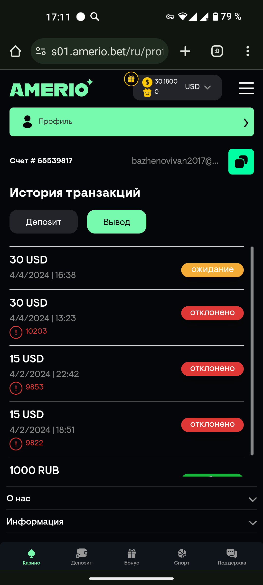 Все, представитель совсем потерялся) поставил на вывод 25 уе в итоге опять отмена. Спросил в саппорте почему отменили, а мне пишут что они просто не знают в чем дело. Вот как то так)))