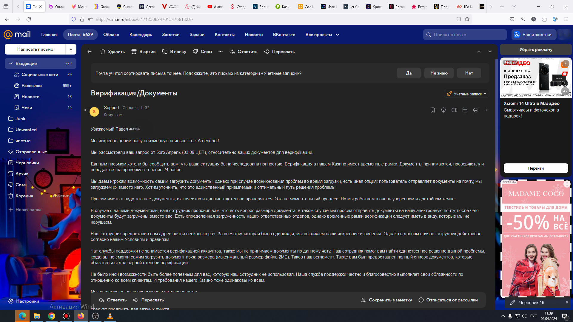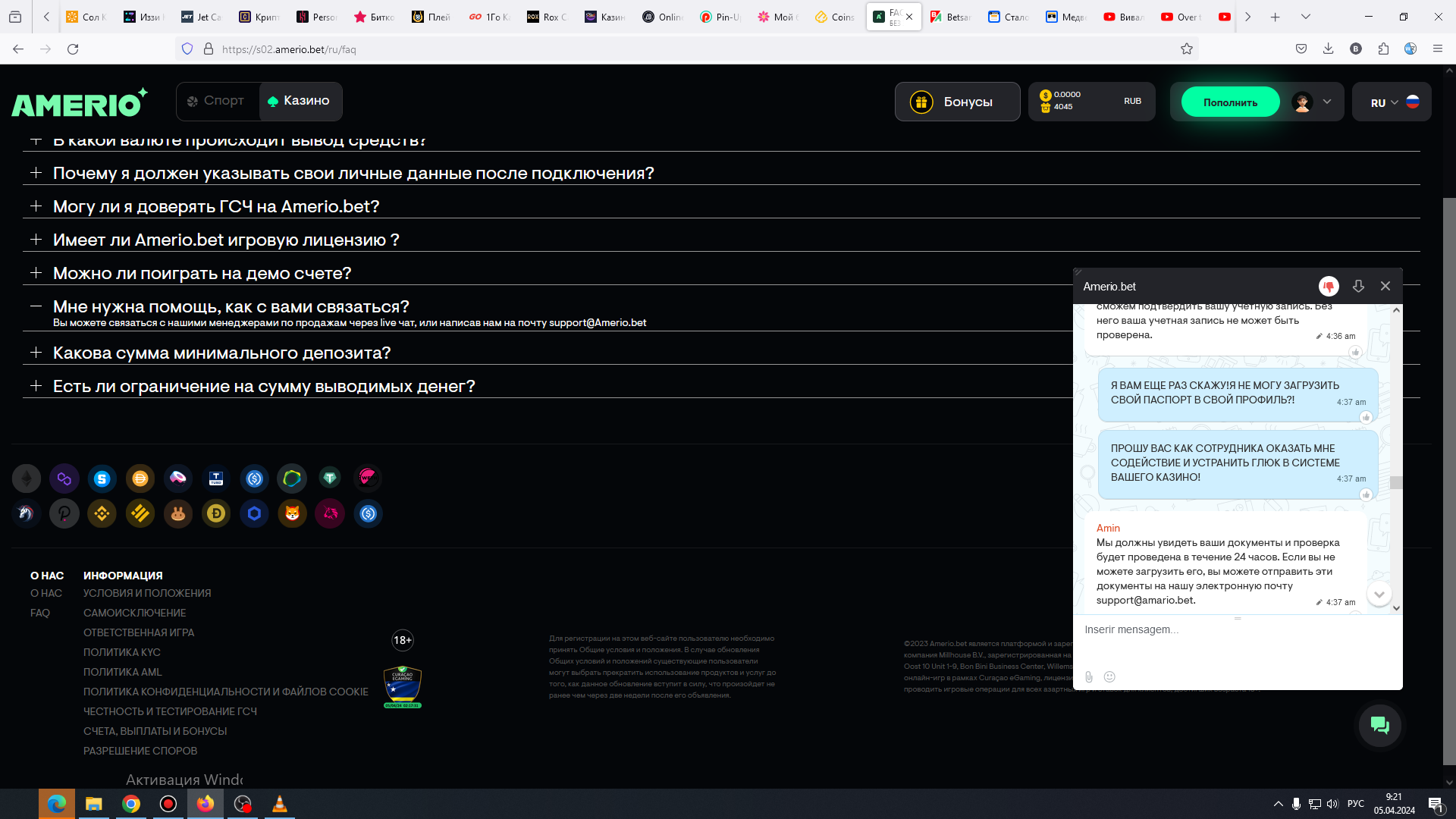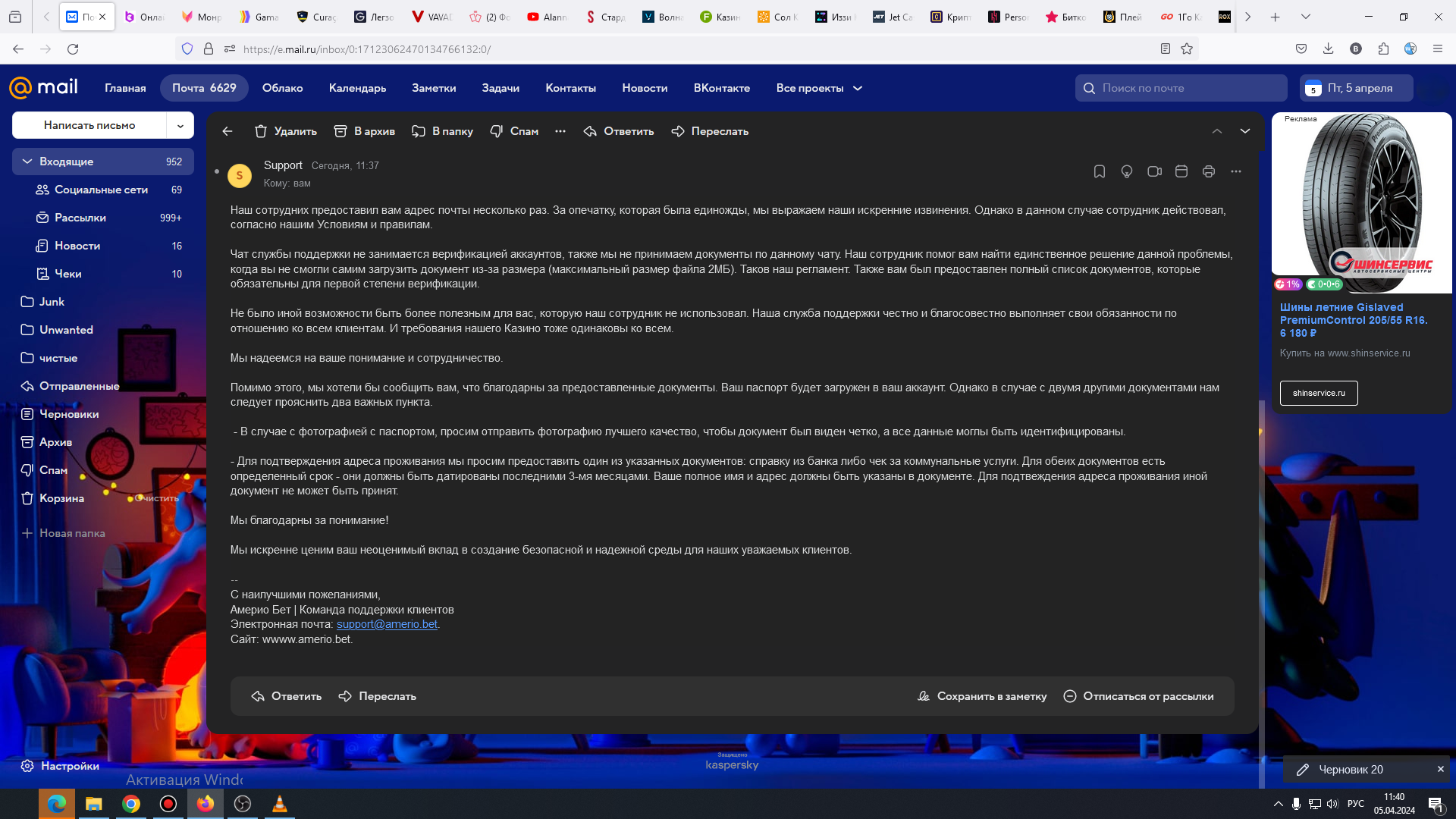 Предложил на почту support@amаrio.bet вместо [email protected] выслать все мои документы и личные данные!Причем повторил это несколько раз!)))))