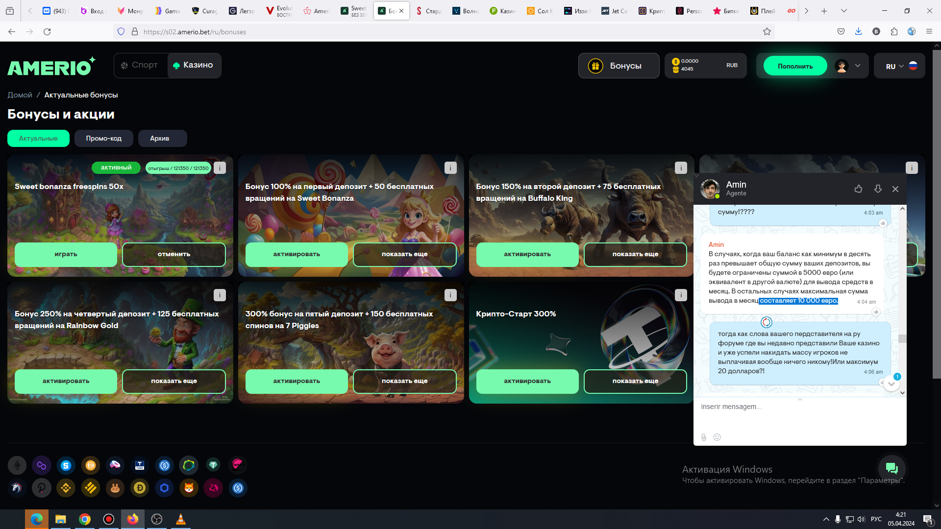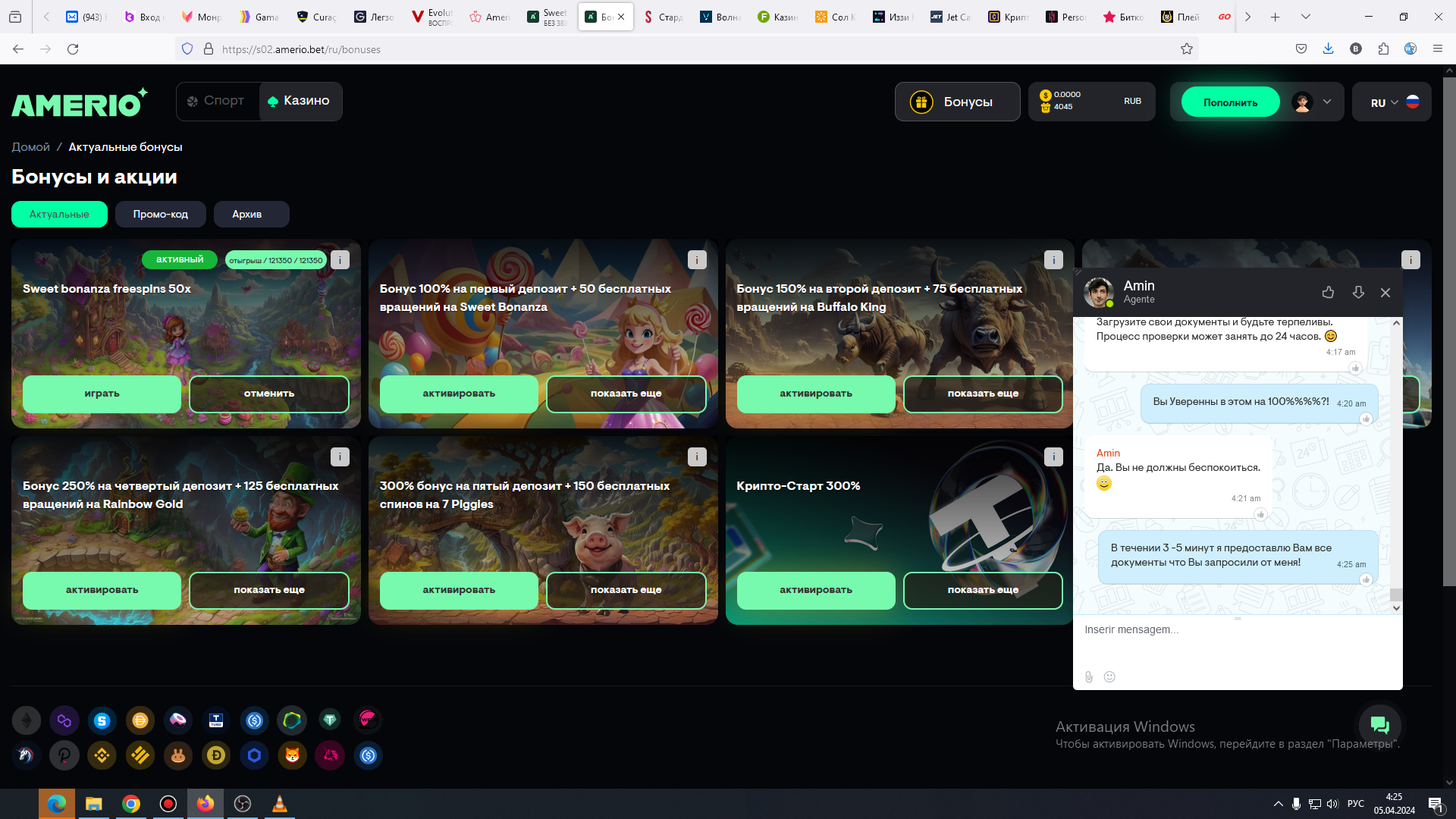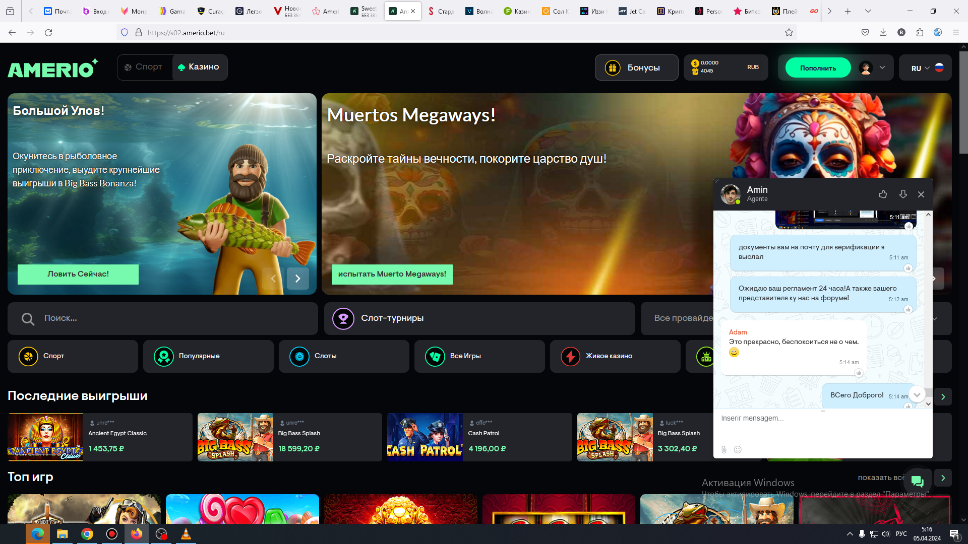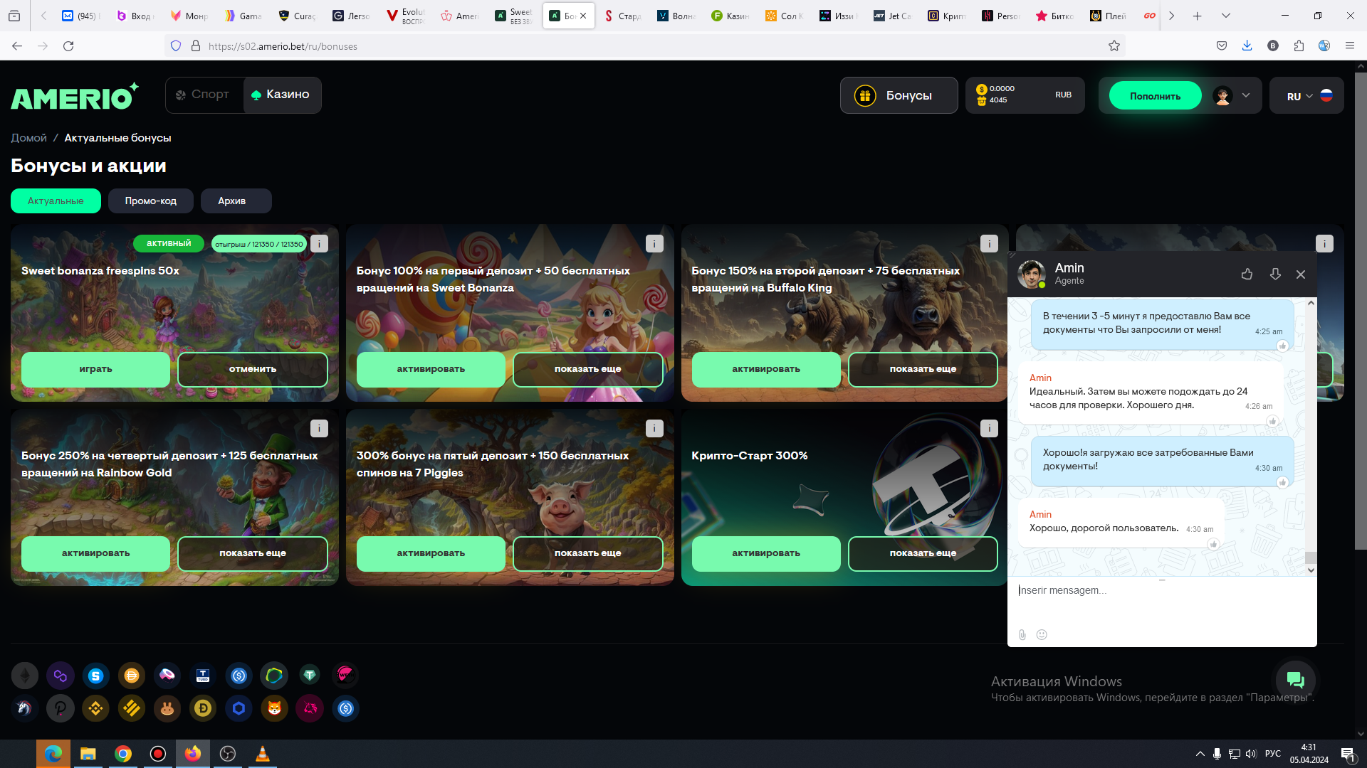 Их первый сотрудник сразу же послал меня тактично )))на почту к ним)))ха-ха-ха вместо того,чтобы помочь загрузить мои документы к ним на сайт через мой профиль!даже и не утруждал себя!также сказал мне что отыгрывать выигрыш с промо фриспинов я могу !а второй сотрудник сказал что отыгрышь за реальный баланс!у них там бардак чистой воды вообще!