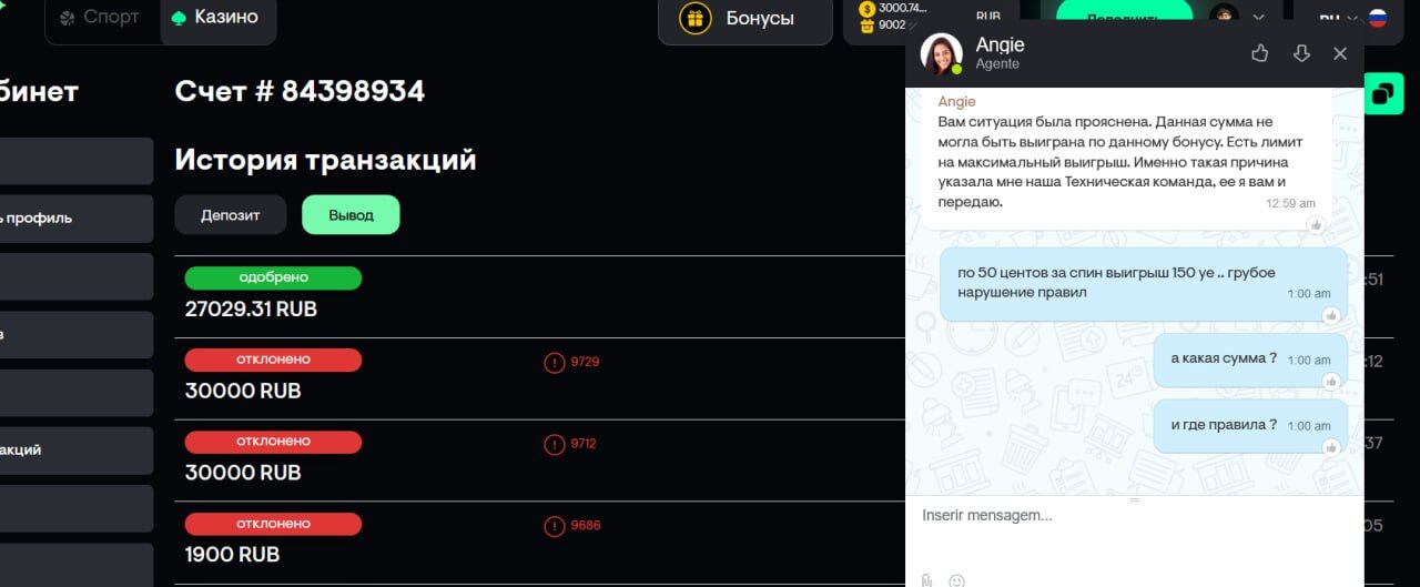 Такая же проблема. Болтается в ожидании со вчерашнего дня. Была бы признательна, если представительство казино помогло в решении.