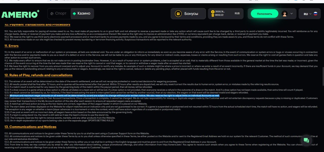 Amerio Casino форум для обсуждения игроками