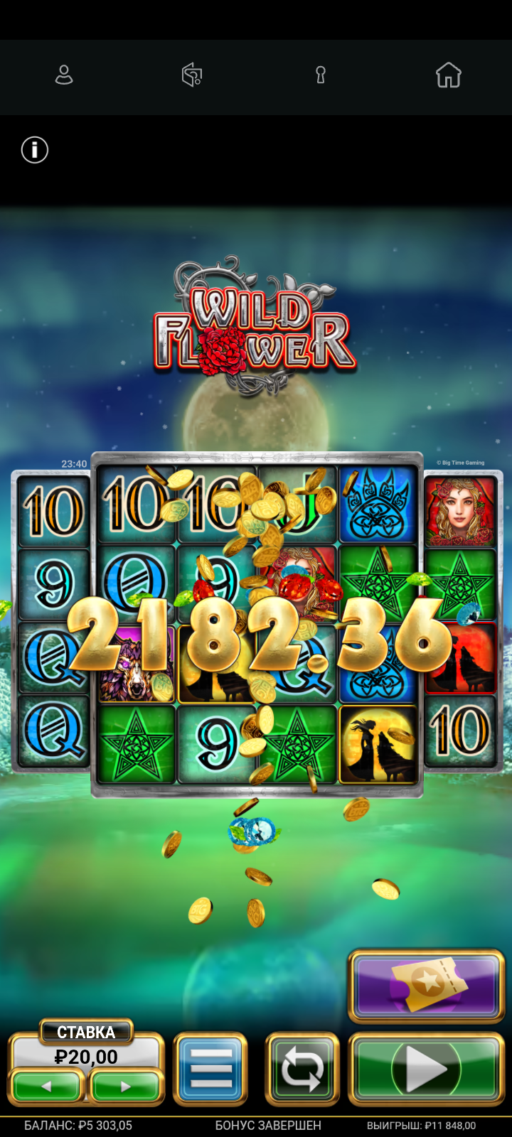 Вспомнил и поймал ещё в одном слоте хот-мод. Старый добрый бтг слот вилд фловер красная луна дала почти х600.
