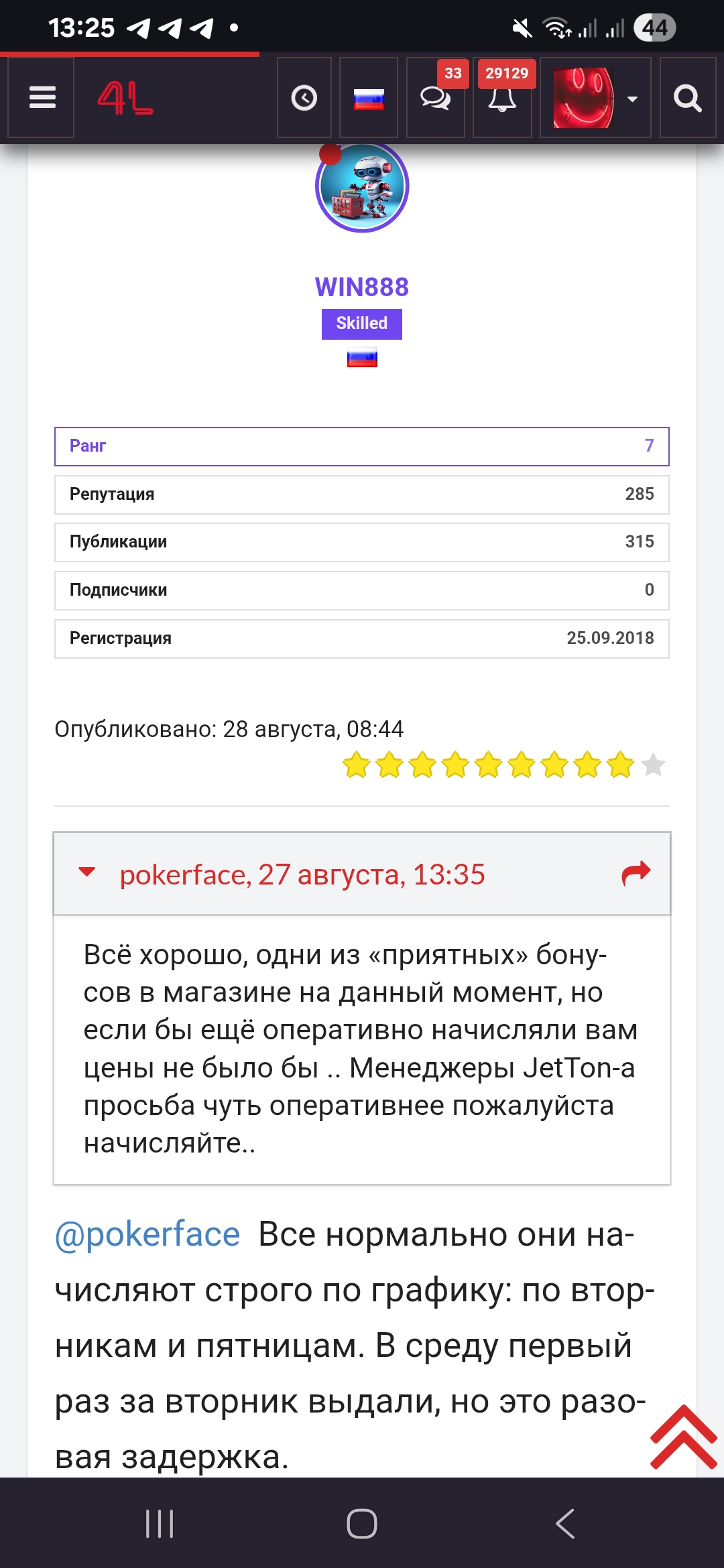 @vrodezdes Так и отвечают по факту зачислили фриспины, было 12 часов на активацию, а дальше уже не их проблемы, с ботом у меня в водке казино так любое действие, зачисления депозита, бонуса и или вывода приходят оповещения, тут хз какая путаница получилась помню точно регался по ссылке с форума хотел фриспины получить за регу одно из условий было тг привязать к акку, так и не понял почему не получается в профиле контактные данные телефон и тг недоступно привязать, в чате уточню, а так да был бы бот подключён вряд-ли пропустил инфу, похоже не переначислили фриспины в чём я и не сомнивался.