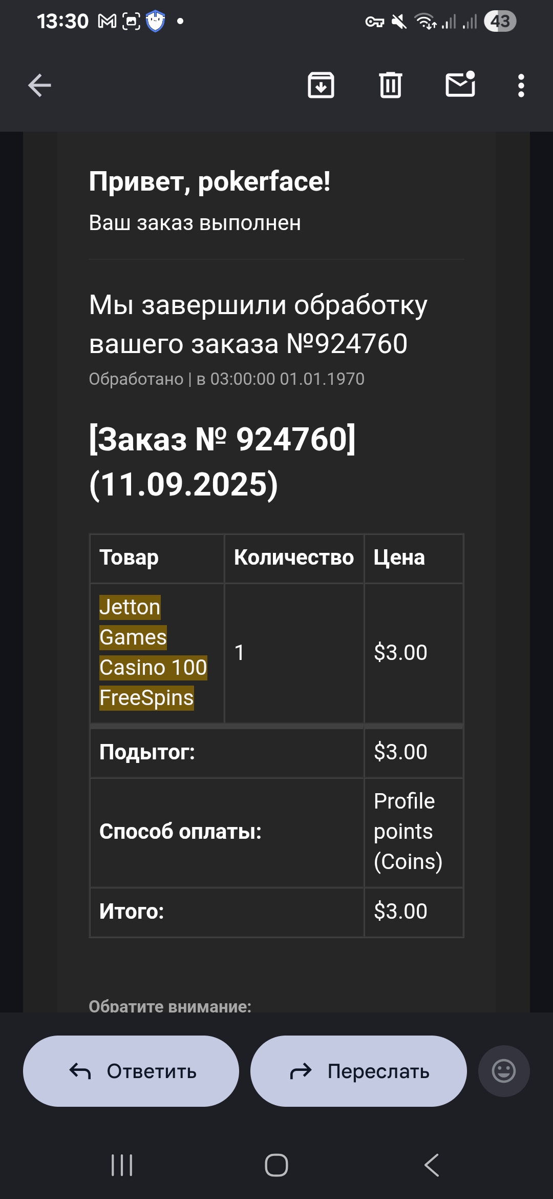 @lynoleym1 было такое, то деп не подходил под пак фриспинов бонуса и был возврат, то фриспины не зачислялись а покупка была как завершена, исполнено, обратись выше ссылка в телеграм саппорт форума скинь номер заказа, проверят, ответят в чем причина .