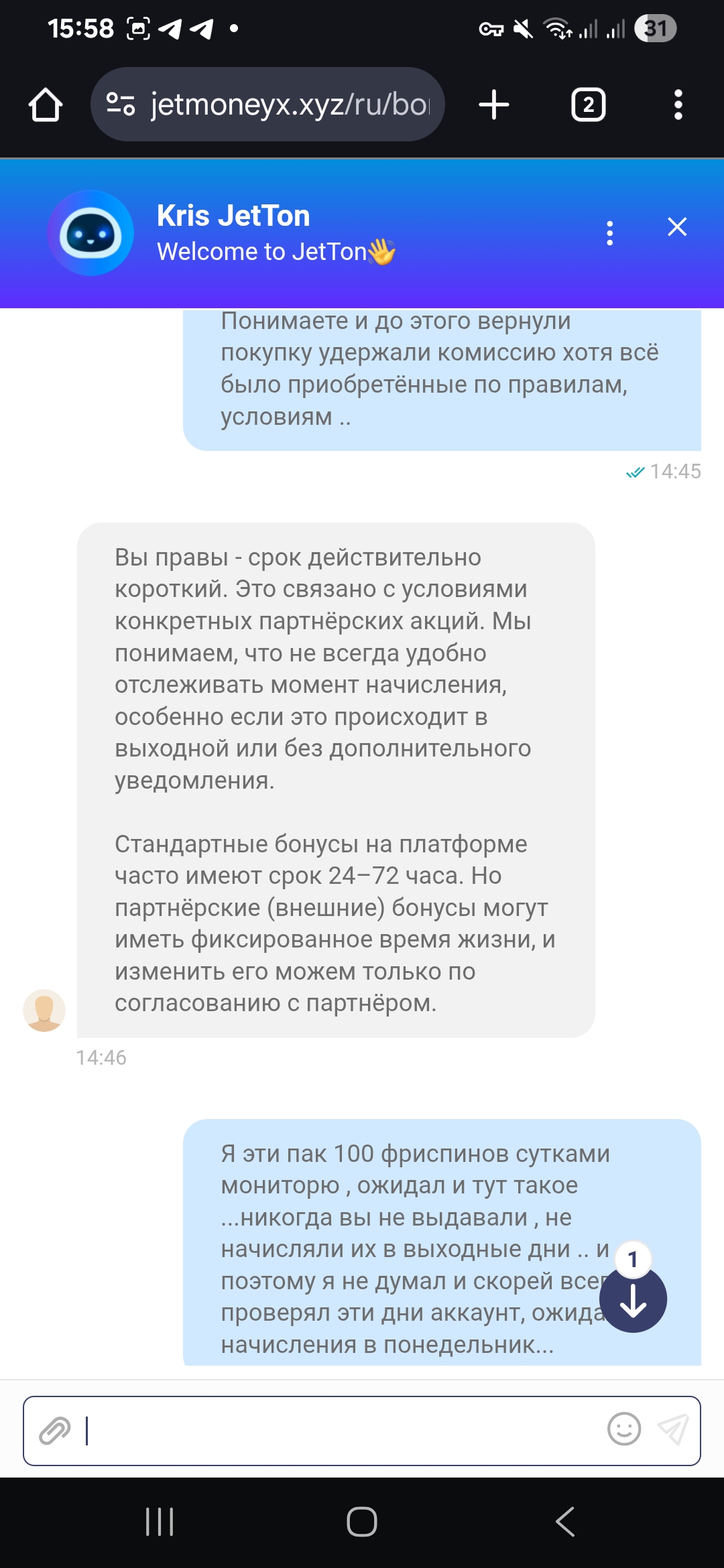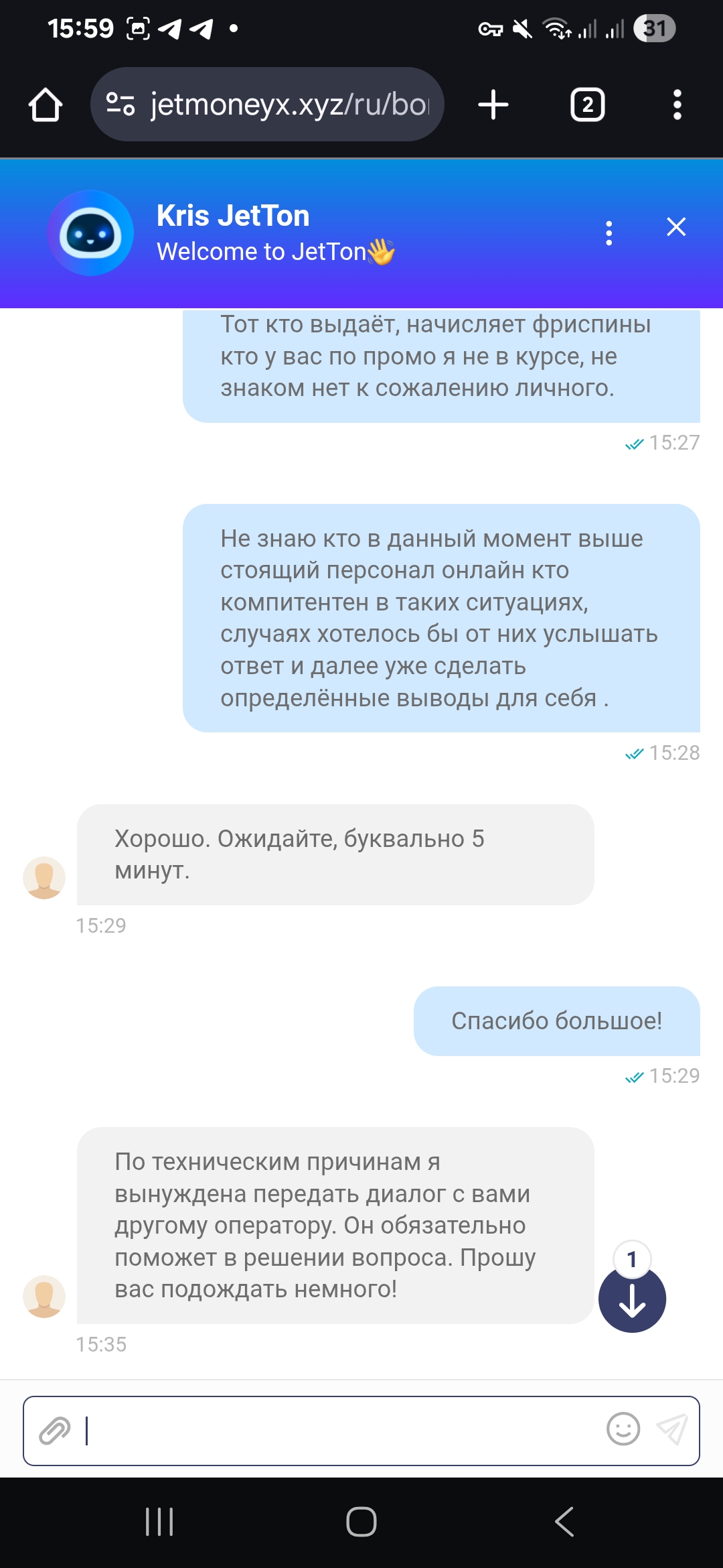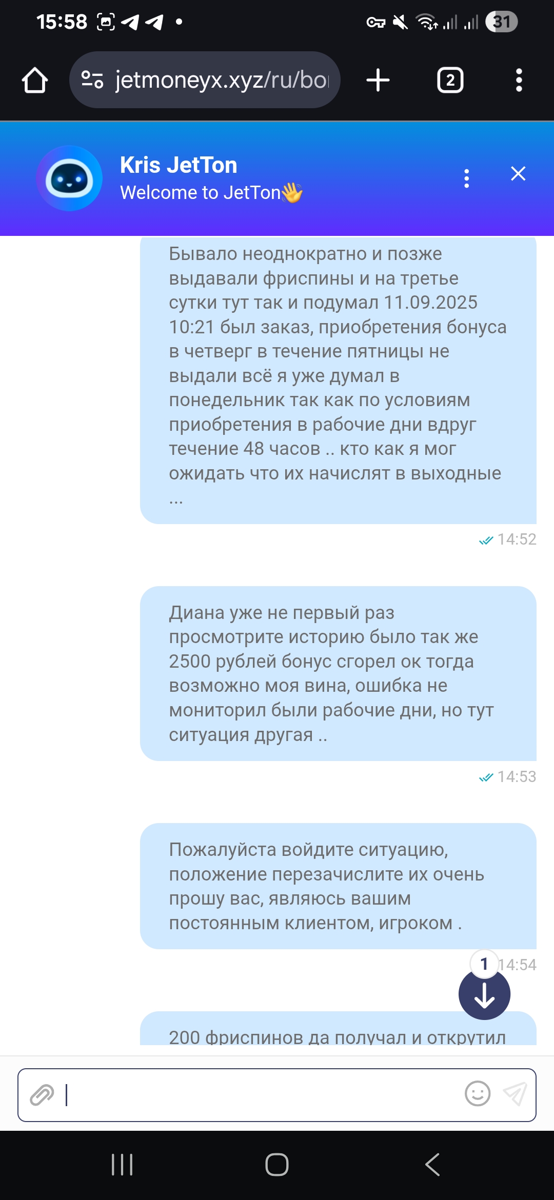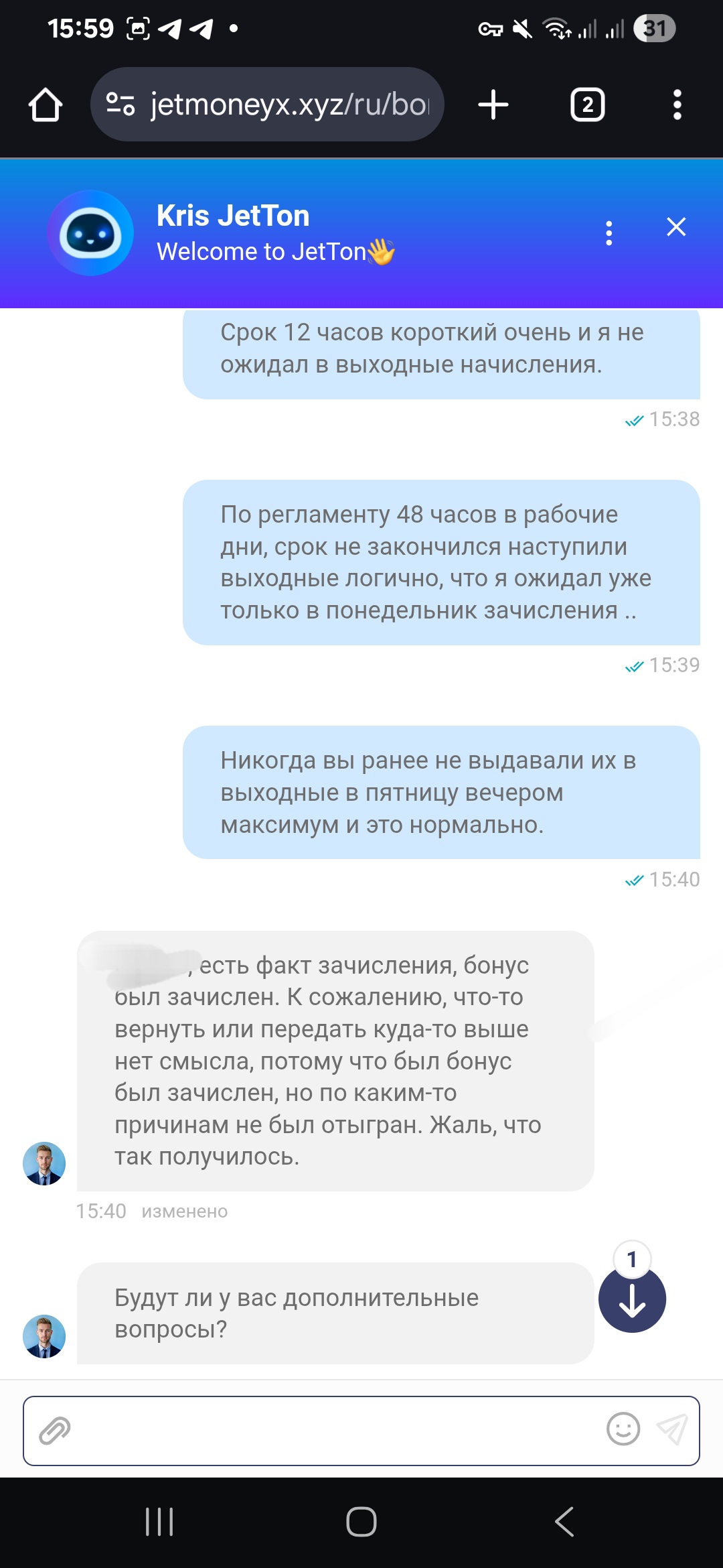 Самое интересное они не дают инфу об твоей активности на сайте, на акке в плане логина когда первый раз «проспал» 2500р кэш бонуса тоже так и не понял в какой день мне из выдали появились сомнения а не в выходные ли дни мне их выдали, так как в рабочие дни до вечера до сна до 22:00 мониторю акк и на мою просьбу проверить дни начисления бонуса и мой вход в казино было вежливо отказано в начале Диана оператор обещала ответить после 5 минут ожидания передала, по тех. причинам покинула диалог и присоединился другой уже сотрудник и так же по тех.причинам они не смогли ответить на мой вопрос, далее на мою просьбу об перевыдачи фриспинов так же вы не поверите снова ))) ссылаясь на технические же технической )) возможности не могут переначислить фриспины, бонусы на акк )))) Просто как с маленьким ребёнком общаются да бла бла мы всё пониманием нам рчень жаль , вы наш постоянный игрок, примим к сведению , передадим инфу Европе одна вода а помощи, лояльности 0 в этом плане …