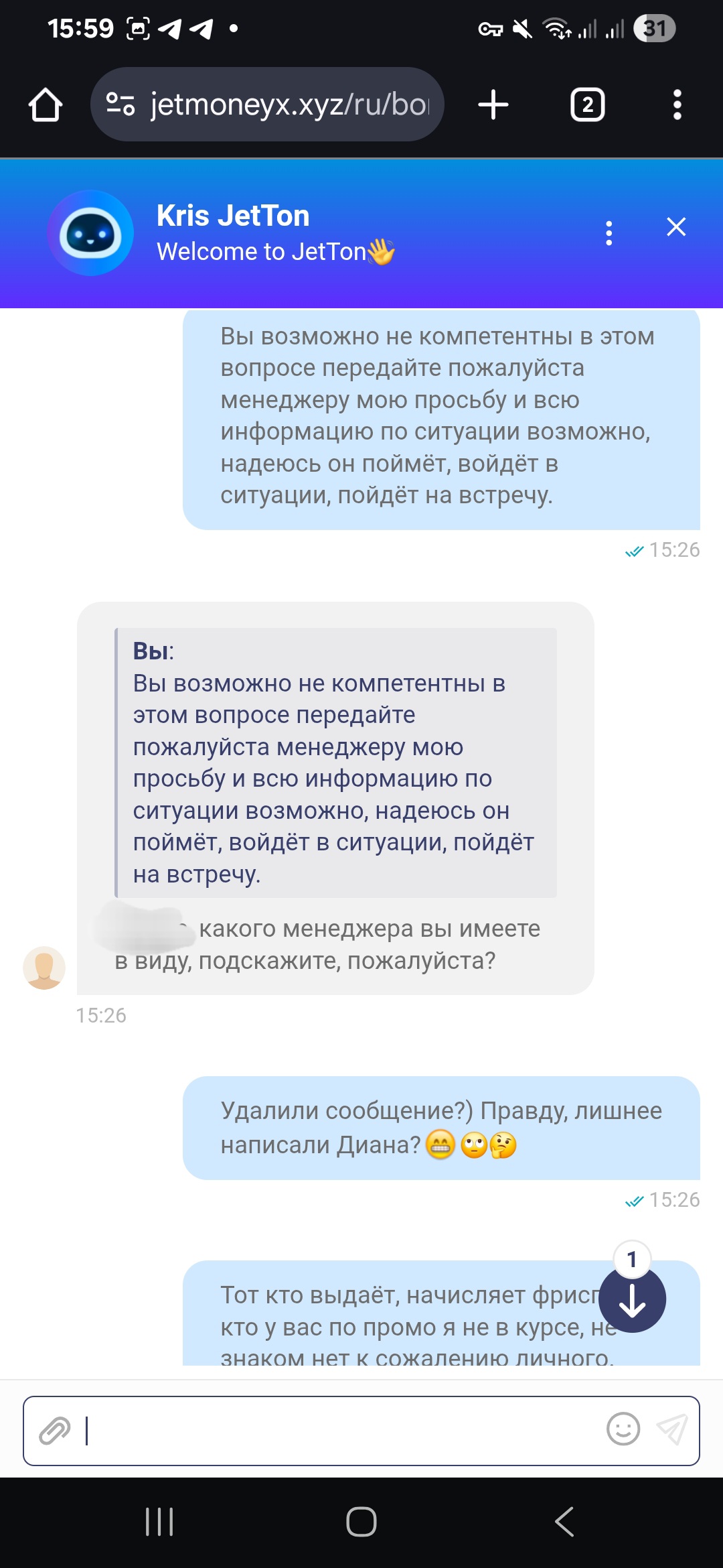 Просил старшего пригласить в чат более компитентного в этом вопросе об просьбе перевыдачи пришёл Крис понтов, чсв хз возможно мне показалось ) как директор обувной фабрики )) а оказался коллега Дианы ни в какую сухие факты бонус был выдан и всё на этом ……..