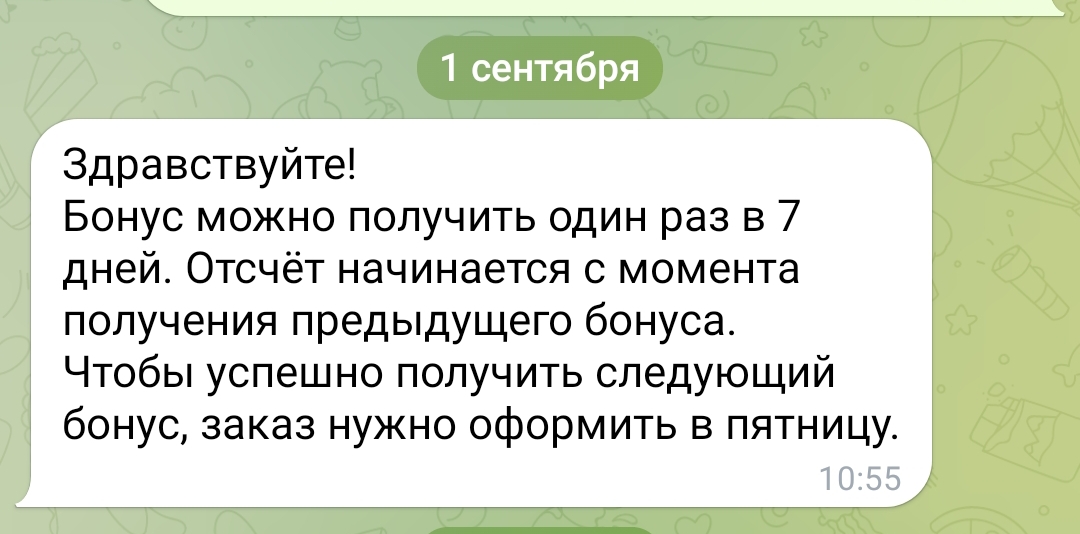 Я чесно то запутался немного, я делаю отсчёт с дня получения фриспинов уже на жеттоне, а не с дня заказа здесь, пока проходило нормально, а тебе ответили, что можно сделать с дня заказа. То есть, если я заказал сегодня среда, а придут к примеру в жеттон в пятницу, я все равно могу повторно сделать заказ в следующую среду? Ты так заказываешь?