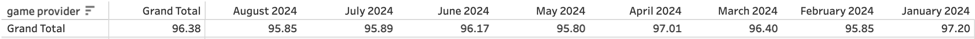 Информация от менеджера про 96% была предоставлена на основании всех игр и всех провайдеров, представленных в казино. Поэтому выборка нескольких из них, показатели которых отличаются от указанных, не говорит о том, что весь проект имеет RTP ниже того, о котором Вам сообщили в Службе поддержки.