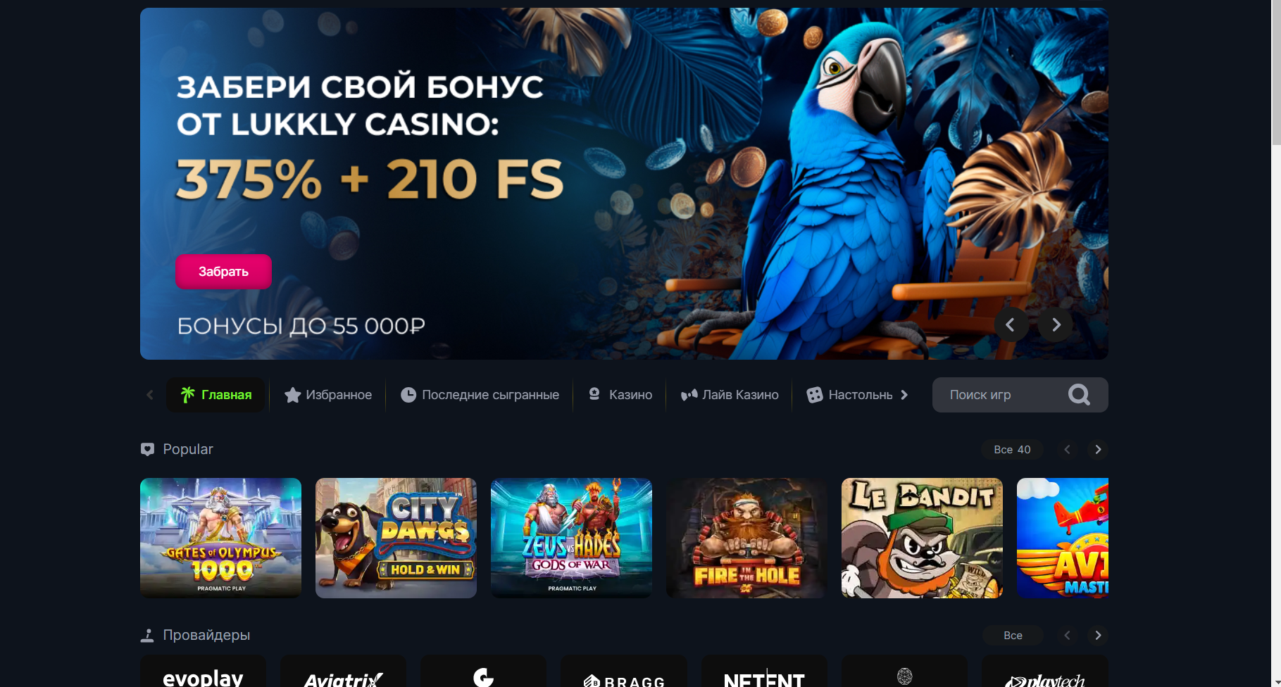 Lukkly — это довольно новое казино, которое предлагает вам массу разнообразных бонусов, игр и еще много чего еще, для приятного времяпрепровождения. Основано в 2024 году.