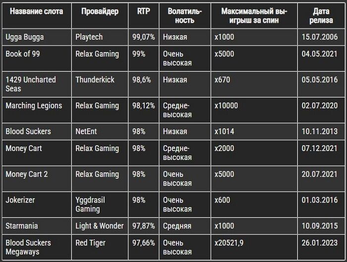 Профильный ресурс Online Betting Guide (OLBG) представил рейтинг онлайн-слотов с одним из самых высоких показателей RTP. Рейтинг Online Betting Guide составлен с учетом данных о RTP и волатильности* слота, а также размере максимального выигрыша.