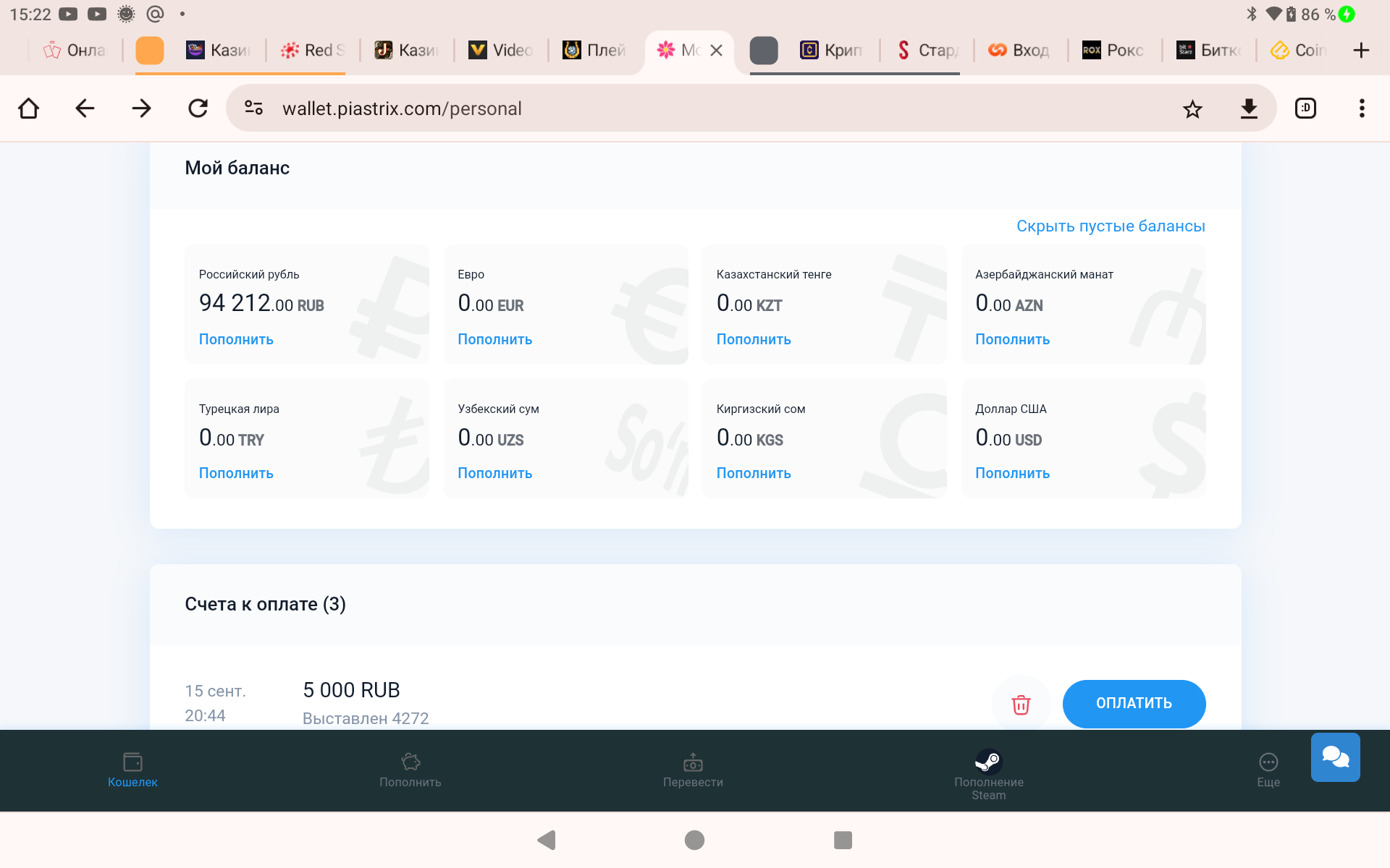 В ПФ исключительно в лайв показываю ,не больше,потому как слоты так навсегда умерли.Покатываю по мелочи,игру серьезную перевел в другие места,а в ПФ в ожидании что, А Вдруг?!Но нет,шестой год ничего😄😂🤣Но ПФ надёжна железобетонно по выводам и это ее главнейший приоритет,про который я и говорил ранее,к тому же продолжаю накапливать материала на них.Вкладки же,открытые в браузере,это именно проверенные мною 100% но, которые в первую очередь надёжны исключительно по выводам и не доставят мне головной боли,ну думаю и другим,кто может мне доверят и обратить внимание на казино,в которые я именно играю,также в каждом из них имею статусы,доставшиеся годами игры и нервов и безумно больших сумм депозитов.Время от времени прилетают письма с каждого на почту,какие то бонусы,какие то эксклюзивные персональные предложения от вип менеджеров и так далее,прочее.Поэтому я и держу отдельный браузер на планшете,ПК и ноуте с одинаковыми вкладками.К игре я,как и делам и к жизни привык относиться со всей серьёзностью и вниманием.