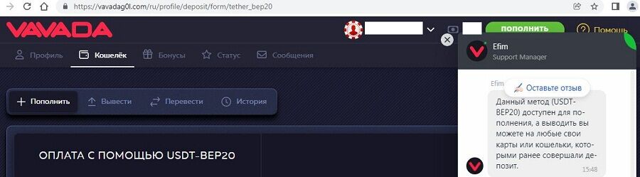 А по поводу депа с крипты а вывода на что Душа игрока пожелает это конечно зачётное решение от Вавады и это я Вам скажу серьезная предпосылка привлечь в свои ряды не только много игроков но и вообще,создать наконец новый тренд обслуживания,т.к именно эта фишка нууу очень интересна всегда была каждому игроку😁🥸✍️💯🤪Депнул с чего хочешь и вывел куда захотел.Так и должно быть вообще,тем более если игрок играет в казино Вообще м данное нововведение от Вавады поддерживаю однозначно,это крутое решение,тем более в данный момент времени когда игроки имет проблемы с платежами,да и то,что с нашего форума любой форумчанин теперь может напрямую при желании депнут прямо с форума в казино на «фарт» так сказать🙃🥳✍️несомненно прибавляет к рейтингу значимости Вавады,которая тем более у нас номер 1 в топ списке.Хотелось бы нам увидеть,как другие ру казино подхватят данную фишку и это зайдет уже навсегда и везде.