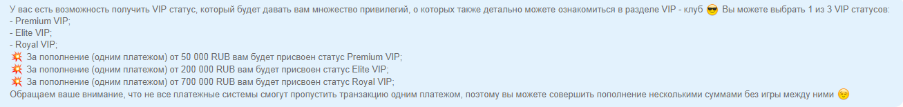 вип клуб давненько уже, чем больше единоразовый депозит сделаешь — тем выше статус получишь короче (минимум 50к вроде надо депать😆), мне это неинтересно, поэтому не вникал особо