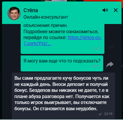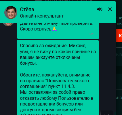 Ладно бы были бездепы, тут можно понять. Но когда ты берешь бонусы за депозит, выиграл с них, то сразу ты стал неудобен и отключаем бонусы.