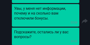 Я понимаю, что бонусы и придуманы для выманивания депозита, но будь добр до конца их предлагать, если даже игрок в плюсе.