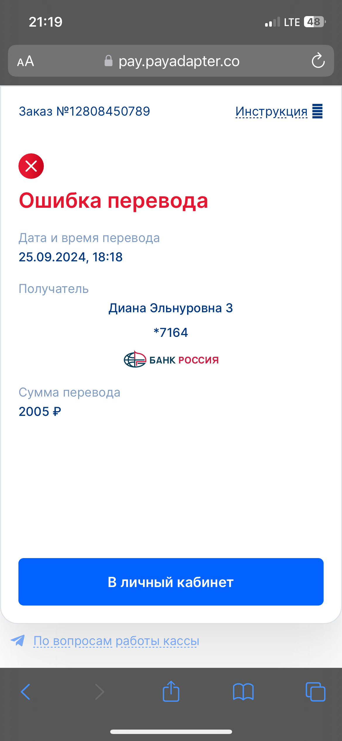 Депозит 2005 рублей отменил оператор, а деньги с карты списались