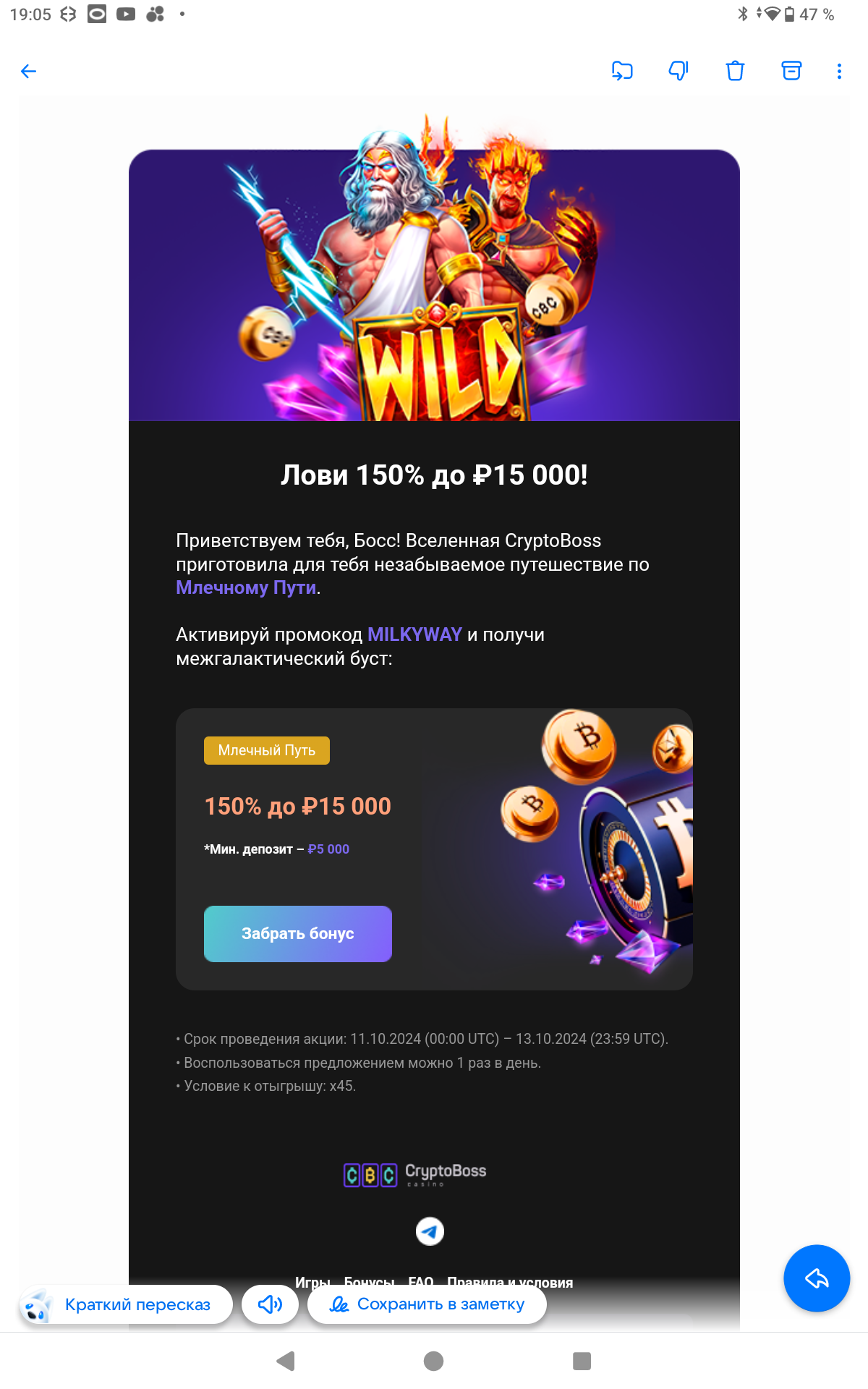 Прилетело очередной бонусное предложение под деп от Криптобосса