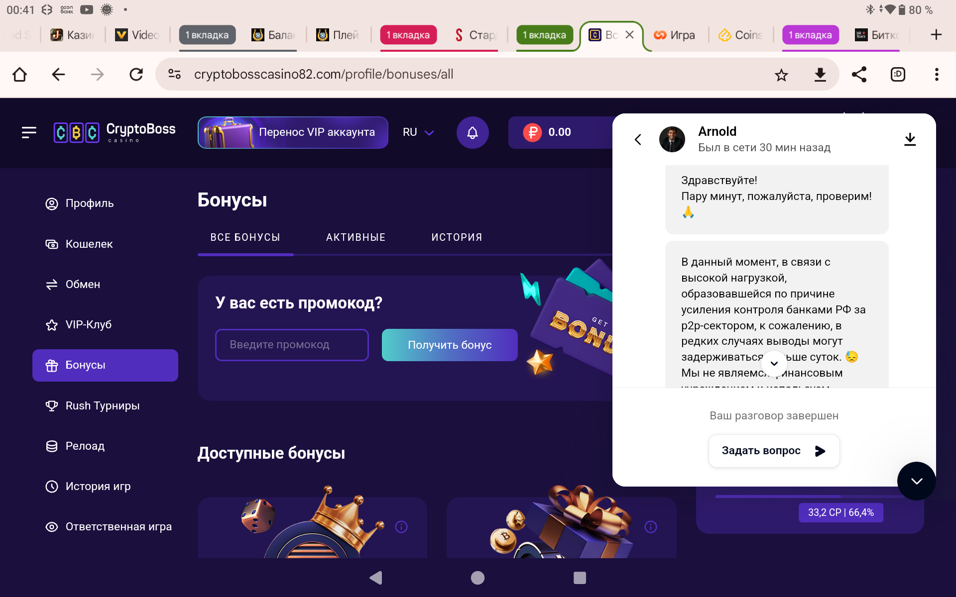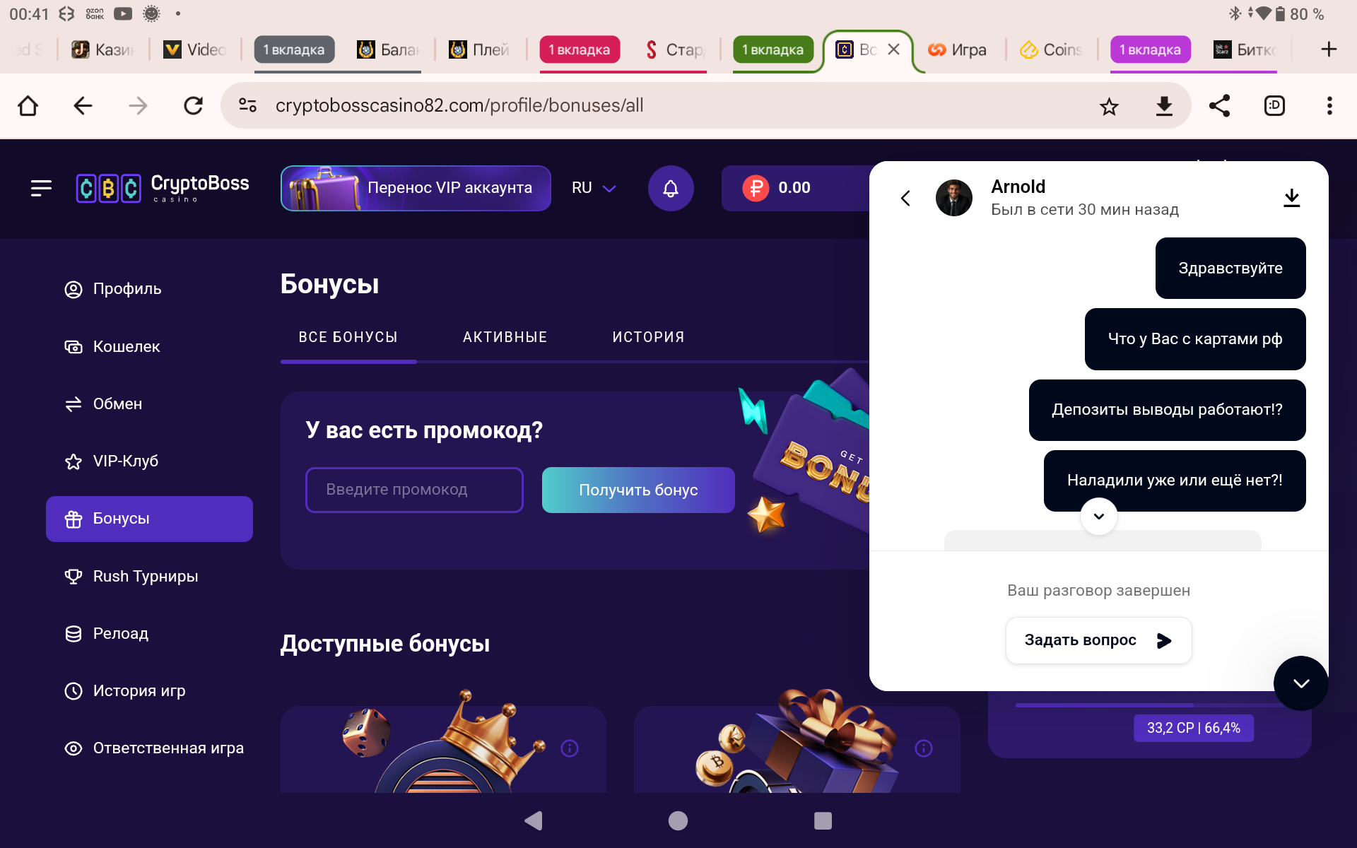 У меня сегодня как пришел на криптобос 50% депал. Играл только никому ненужный нетент. Остальное все мертвое. Накрутил в древних слотах 90% вагера и все, баста.