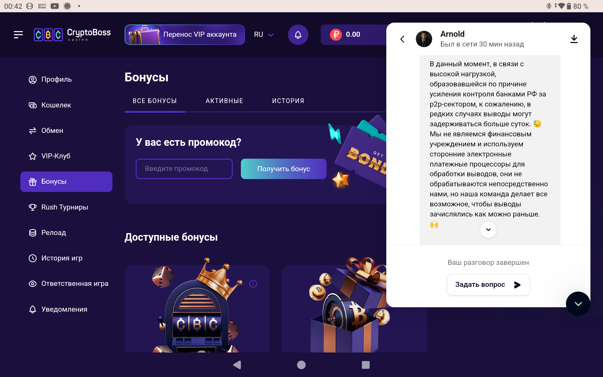 Вообщем все!!Криптобосс в данный момент ЭТО ШЛАК!!Без вариантов вообще,не играет ничего и никак!Вообще ничего не играет.Рекомендую временно вообще воздержатся от их посещения ру игрокам нашим,это БЕСПОЛЕЗНО!Деньги на ветер и в воду!
