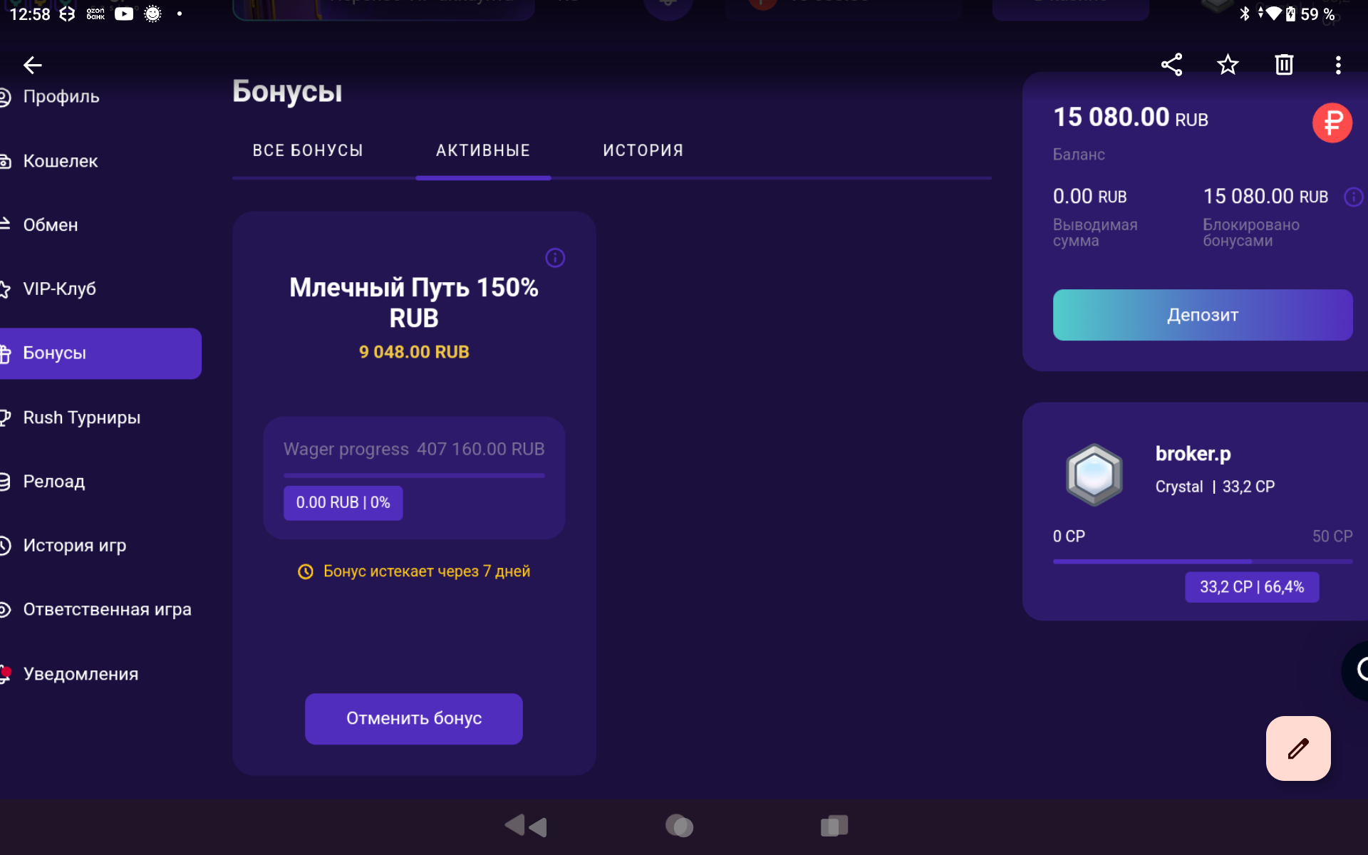 Вообщем решил протестить…криптобосса так сказать,депнул 6.000 дали 150% и вишенка на тортика!!!!Мне тута кто то говорил из «специалистов» что у них только на суму бонуса вагер ,да?!Ну так смотрим ,блин,какая тут сумма бонуса…….в итоге получилась