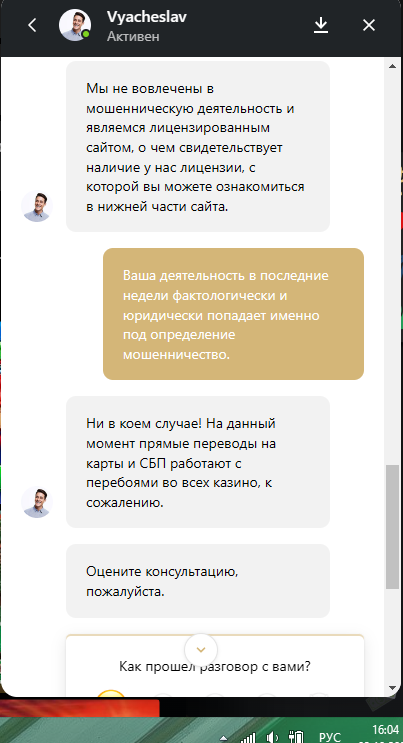 Учитывая то что казино не обрабатывает заявки ИМЕННО на своей стороне сверх заявленных сроков обработки,можно прийти к выводу что публично озвученные казино причины задержек являются лживыми и не имеют ничего общего с реальной ситуацией.