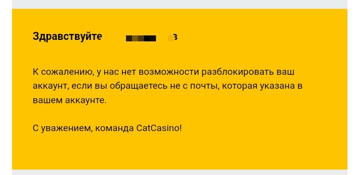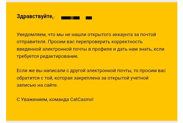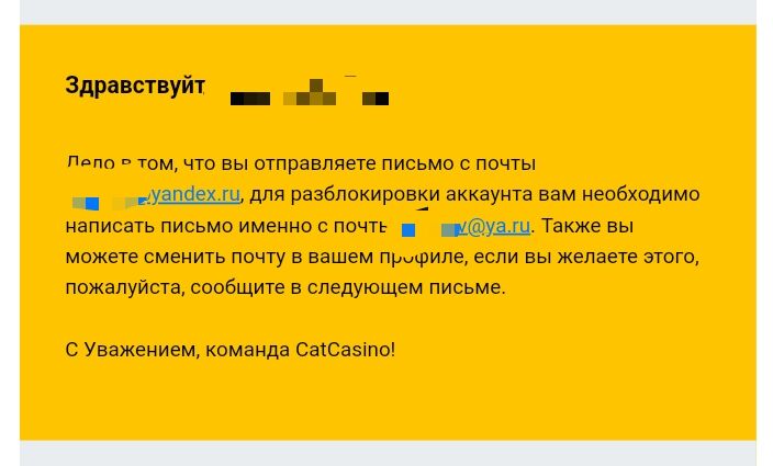 Напишите нам с правильной почты… Или как CatCasino активировало мой аккаунт.