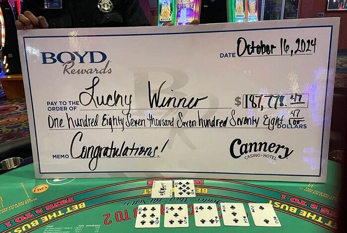 По данным Boyd Gaming, в среду на Cannery стрит-флеш из семи карт в Pai Gow Progressive обернулся выигрышем в размере 187 778 долларов. Анонимный победитель,, сделал ставку в $1 на прогрессивный джекпот, ставку в $10 на обычную ставку и дополнительные $3 на ставку на удачу. Выпал стрит-флеш из 7 карт (2, 3, 4, 5, 6, джокер и 8 треф).