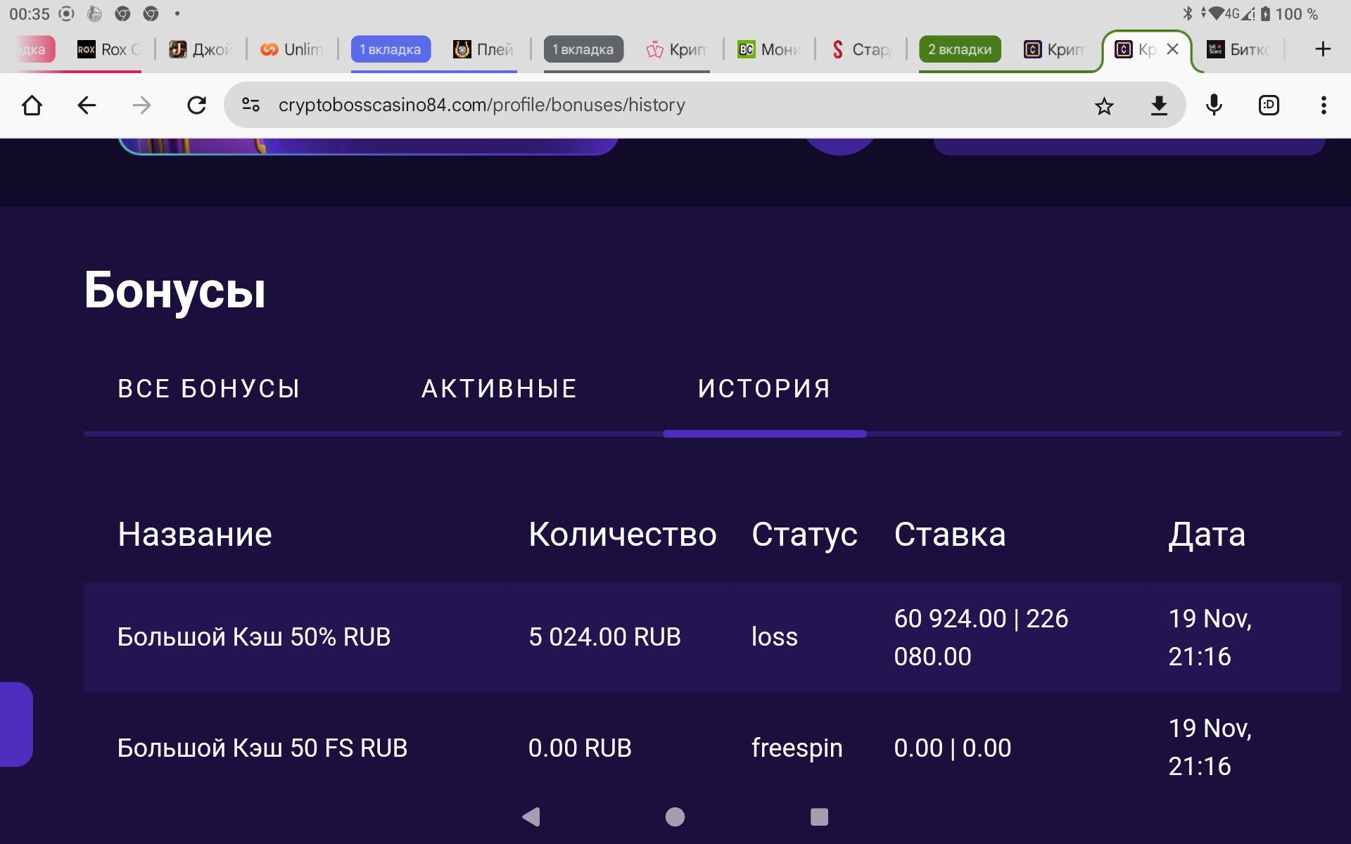 Криптобосс стал жрать деньги не по детски сейчас,советую временно воздержаться туда заливать!!С 150.000 депами по 5,10 тыс не давало даже 1%,тупой жор и слив.Думаю, связано это с оттоком игроков из-за проблем с платежами по картам.