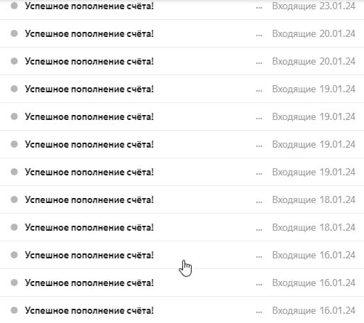 Места в моём e-mail в 2024-ом году становилось всё меньше и меньше от писем «успешное пополнение счёта». А вот писем об успешном выводе всё не было и не было. С каждым месяцем надежда на хоть какой-то занос уменьшалась, а депрессивное настроение увеличивалось.