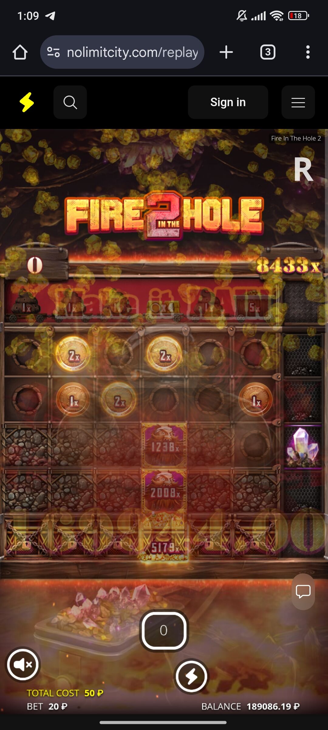Но тут решаюсь зайти в Fire In The Hole 2 по минималочке с кнопкой. Суммарно ставка в 50р, к балансу нормально смотрится. Бонуски падают быстро, одна, другая, следующая. Но все одни и те же, слегка возвращают баланс и только.