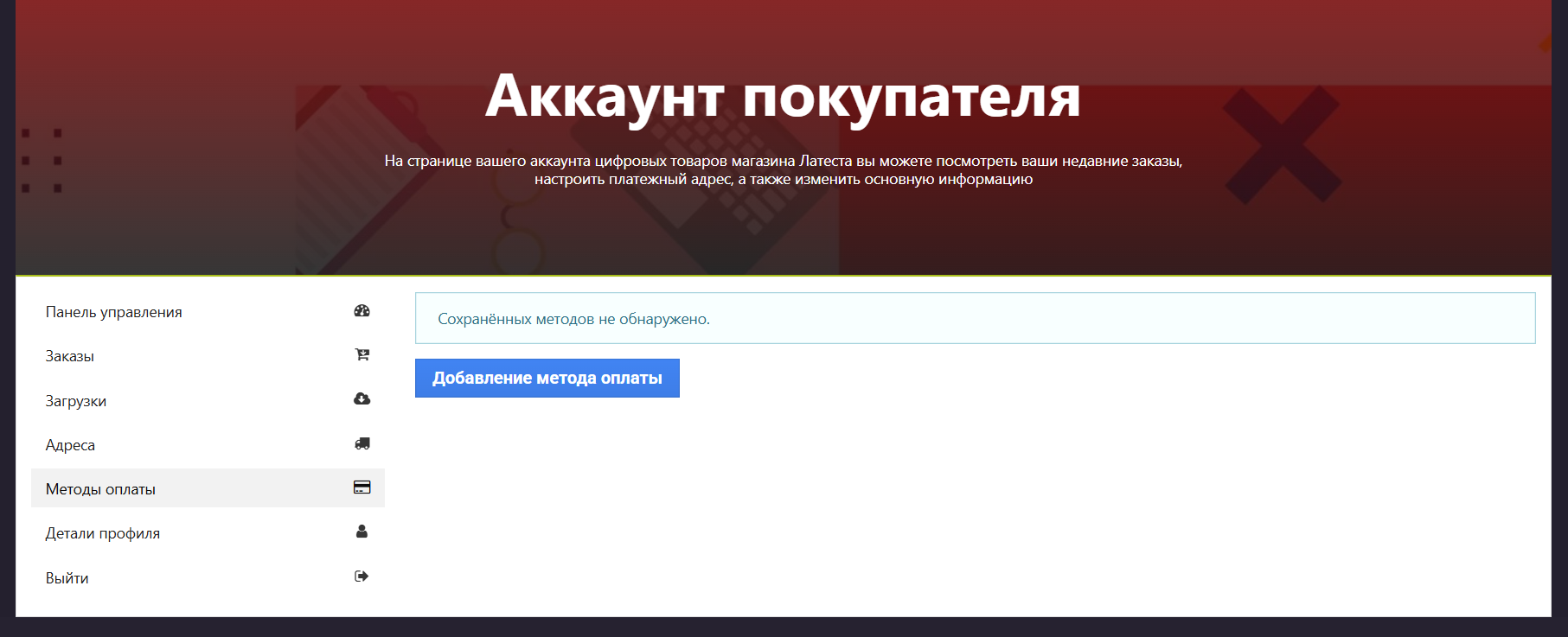 По нажатию говорит, что добавить методы оплаты можно только при покупке в корзине, а там встречает плашка об отсутствии доступных методов.