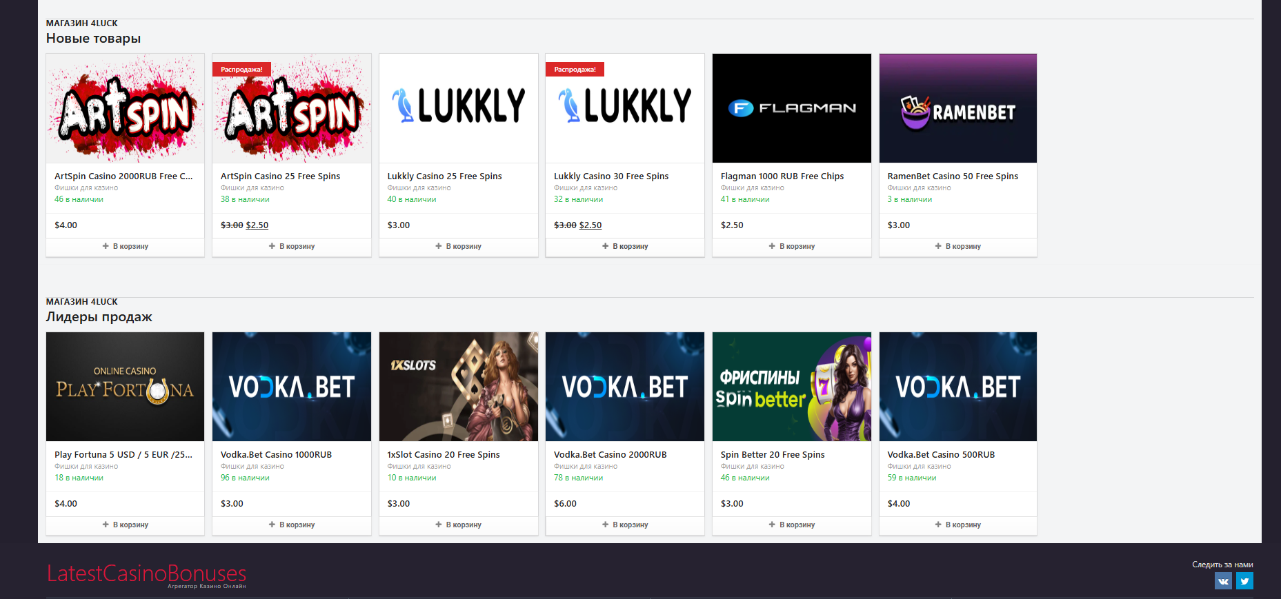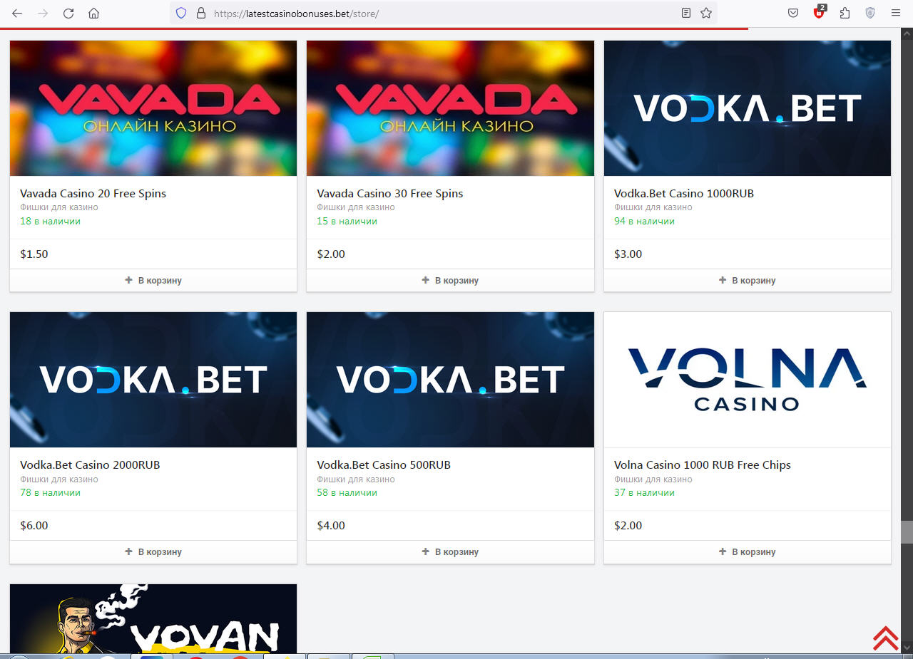 Если в адресной строке изменить на latestcasinobonuses.bet/store/ , то показывает весь магаз.