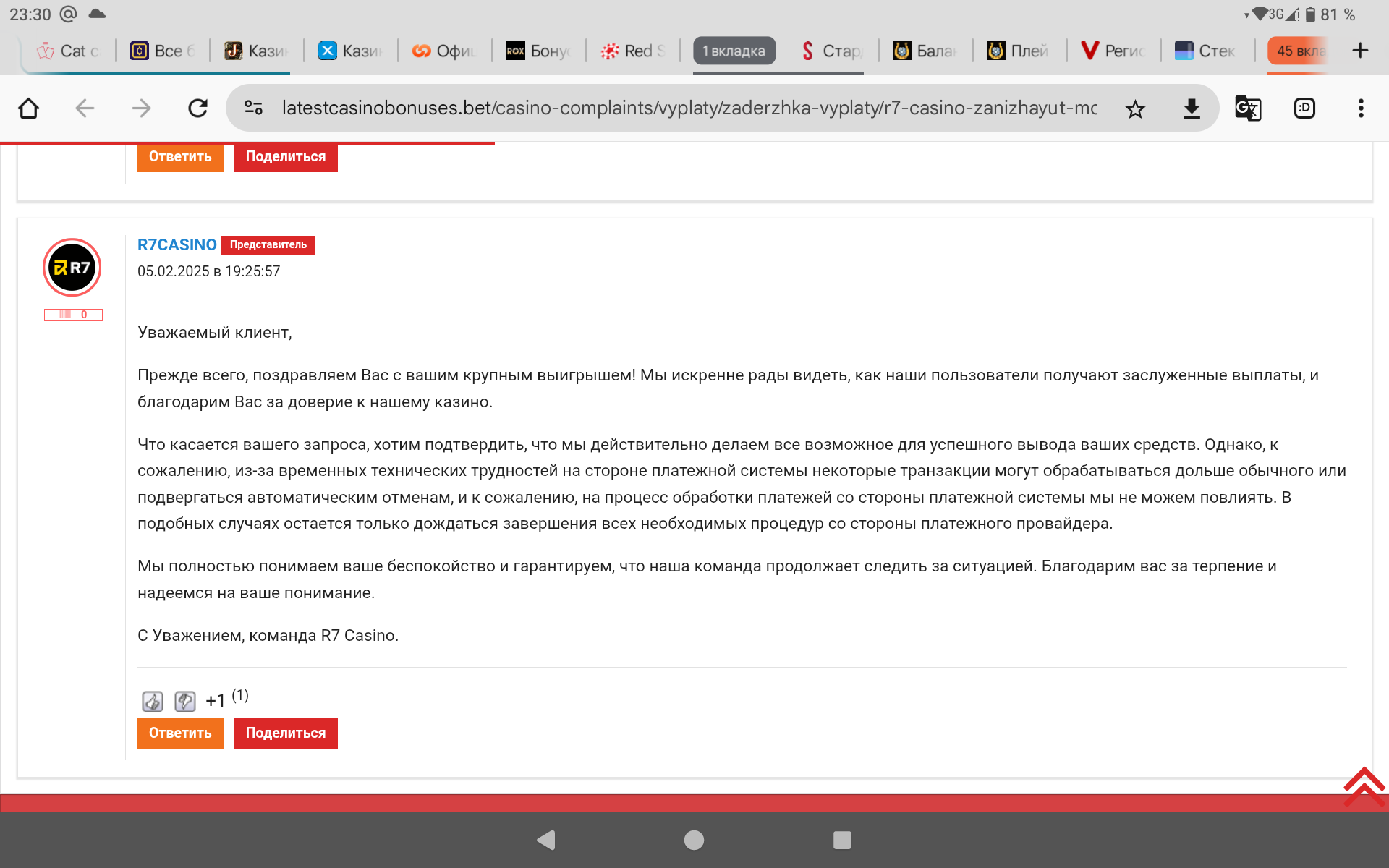да и смотрите что казино ни как не реагирует на жалобу хотя бы представитель данного казино должен прийти и отписаться а он не приходит и не считает это дело делать нужным…….тут и всё понятно……