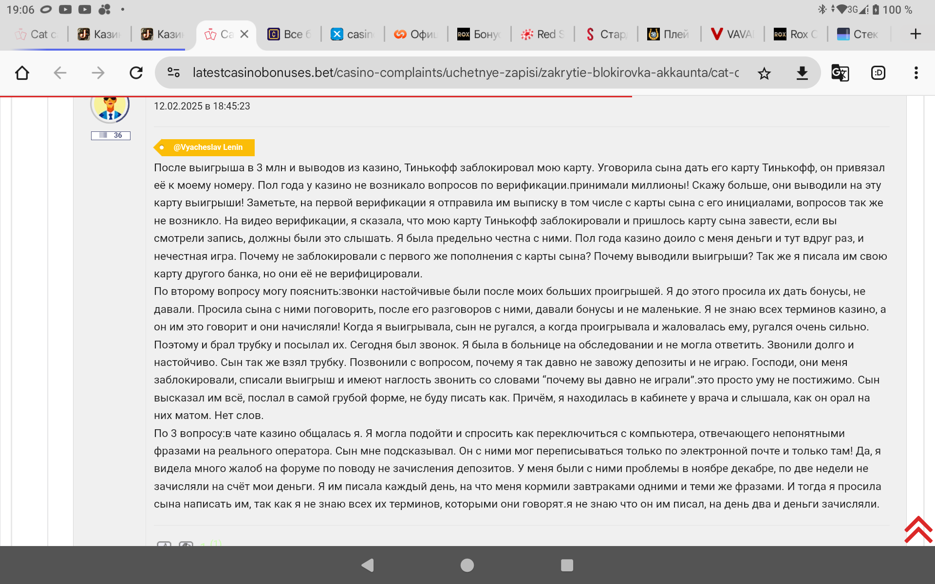Более того,у меня есть аудио файл разговора с сыном Валентины Федоровны, Сергеем,где я также спросил у него про то,что Валентине Федоровне был задан вопрос о том,где играл или играет её сын Сергей и лгать не имет никакого смысла вообще!!!Он также ещё раз заверил нас с Андреем,что играл когда-то всего лишь в одной Ваваде,в районе 100 к слил и более не повторял сей дурной опыт,никаких других рег у него Нигде,Повторяюсь Нигде нет и не было!!!!!!!Я предупредил его ,что данная информация легко будет получена и смысла говорить неправду нет вообще в Принципе и он ещё раз сказал,что не беспокоится за сказанное,он нигде никаких аккаунтов не имеет!!!!!!!!!И говорит Правду!!!