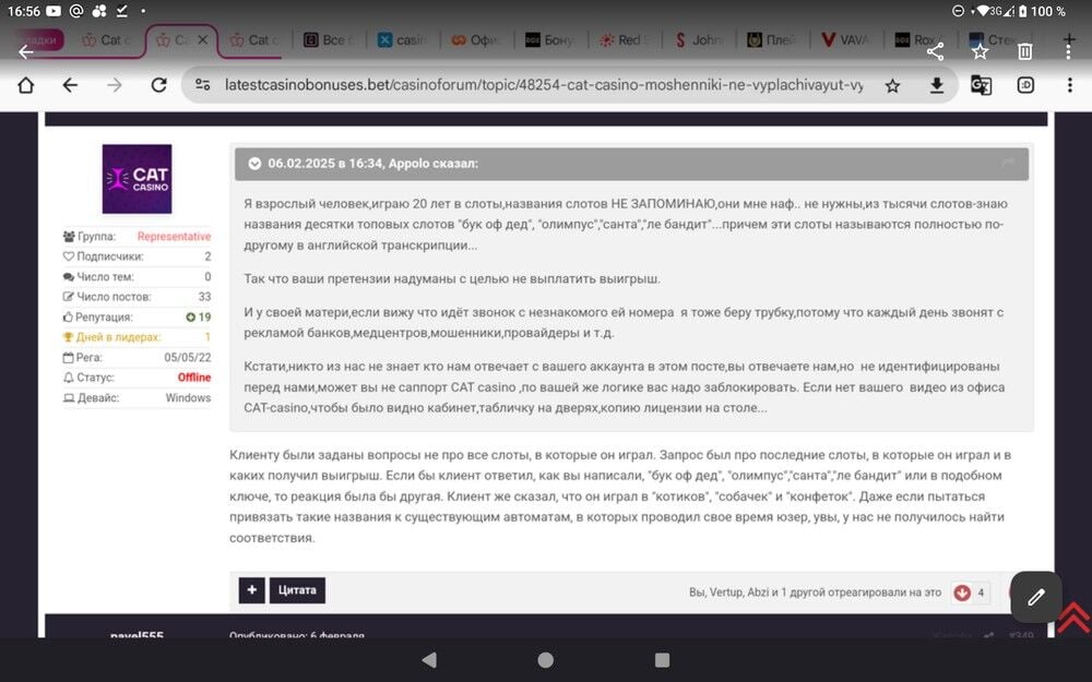Cat casino мошенники. Не выплачивают выигрыш 5400000 — LatestCasinoBonuses — Обращение Валентины
