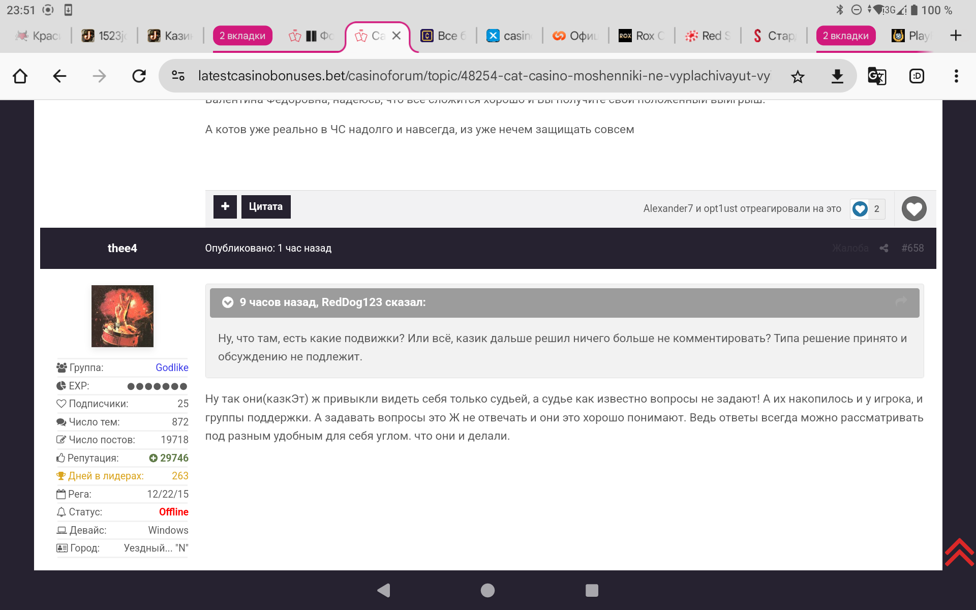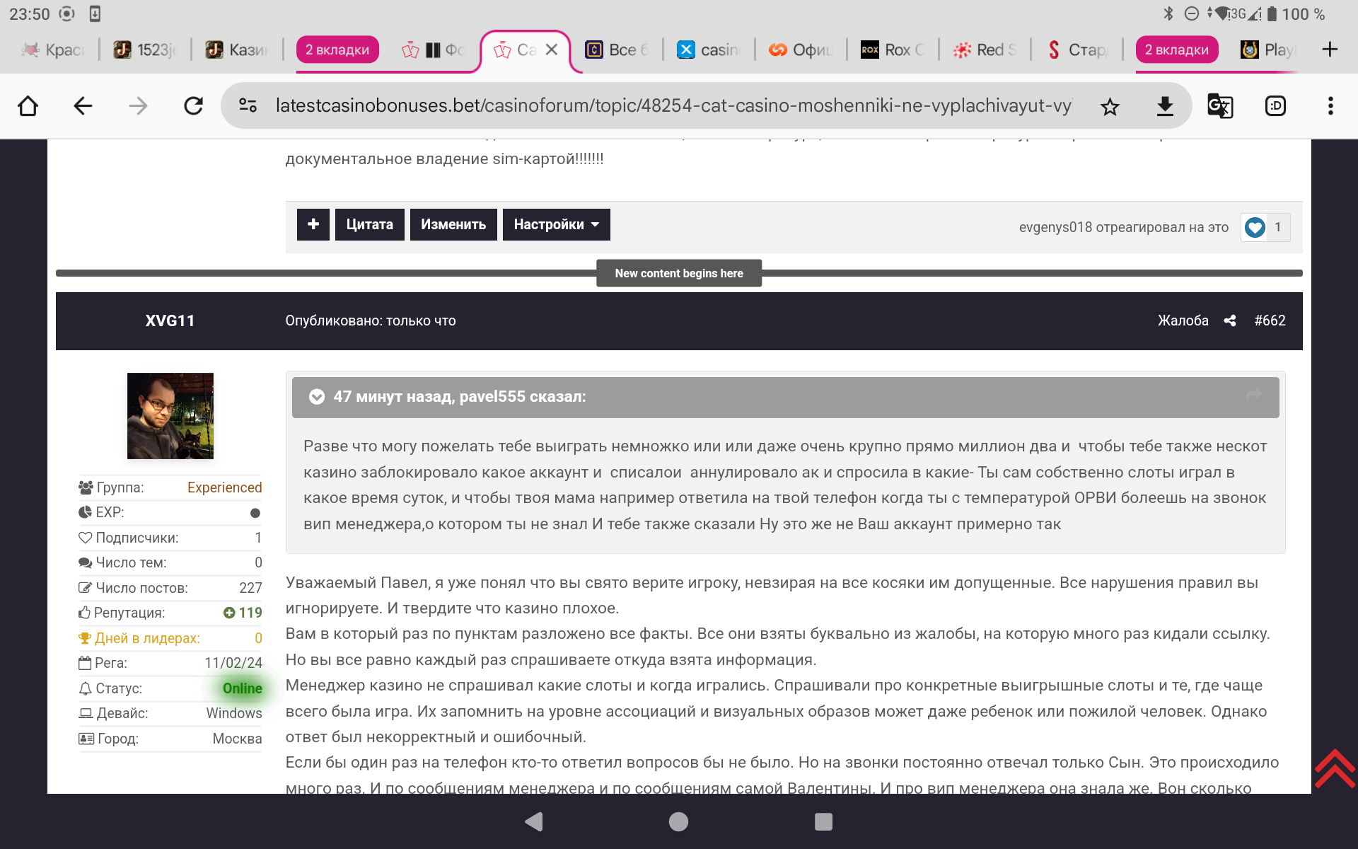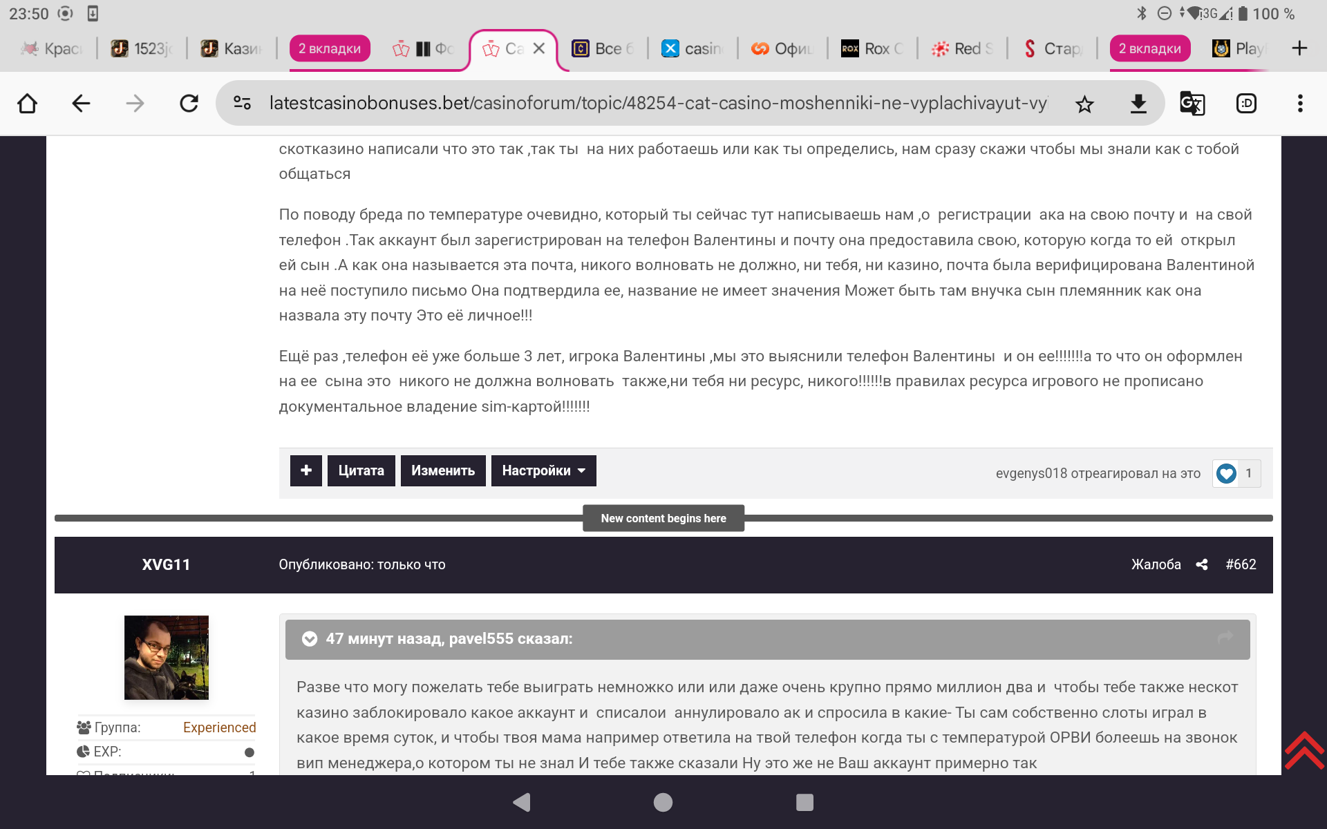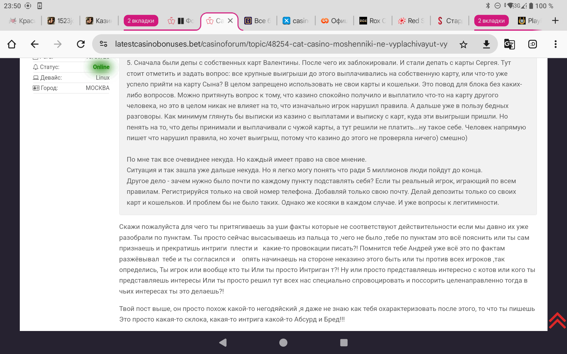 К слову,Валентине Федоровне опять звонили на телефон и предлагали продолжить игру в этом 🤣🤣🤣 так называемом Кэт!!!!!!Вы только вдумайтесь,Игроки!!!!Они кинули ее на 5,4 миллиона рублей ,отказав по надуманным причинам и без оснований в выводе честного выигрыша,только потому что она не знала названия слотов в которых выиграла и на ее телефон ответил мужским голосом ее сын,когда она не слышала звонок и это стало аргументом,что аккаунт не ее вначале и теперь ещё и звонят и предлагают снова сыграть!!!Цинизм зашкаливает!!!!!!!!