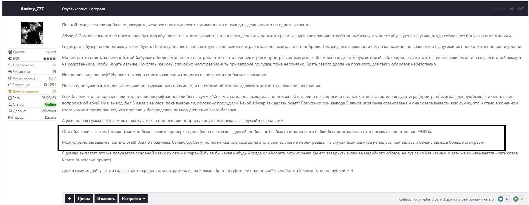 По поводу котов — жаль конечно, я для себя выводы сделал давно однако всё же надеелся на то что они выплатят или хотя бы часть, но увы они решили заскамится полностью… жаль конечно ведь в первую очередь страдает игрок а не казино.