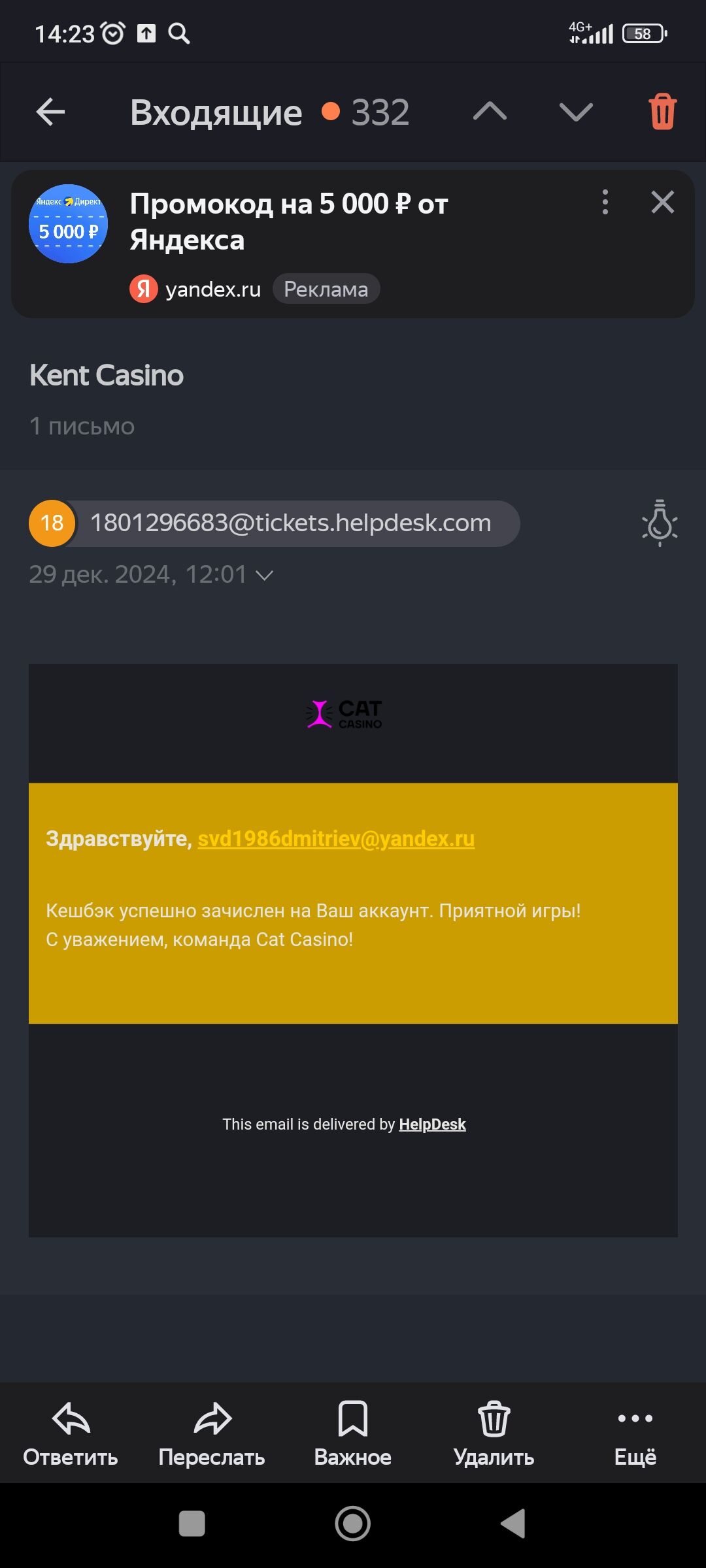 Cat casino мошенники. Не выплачивают выигрыш 5400000