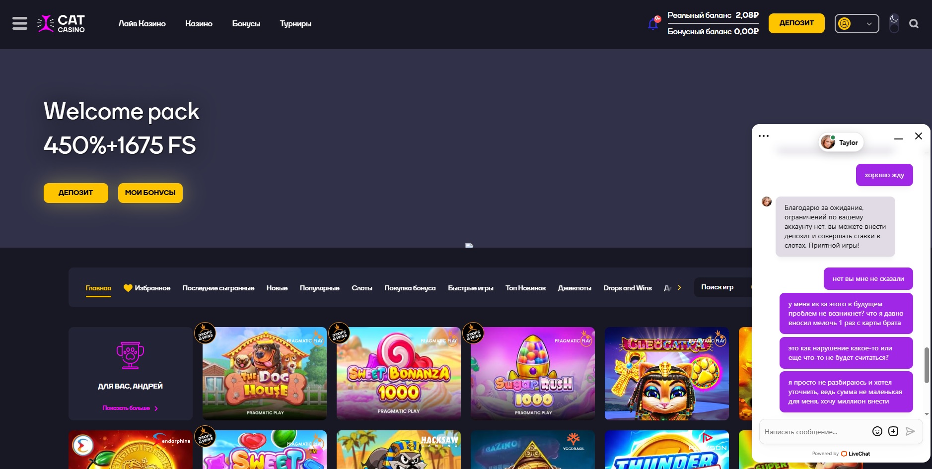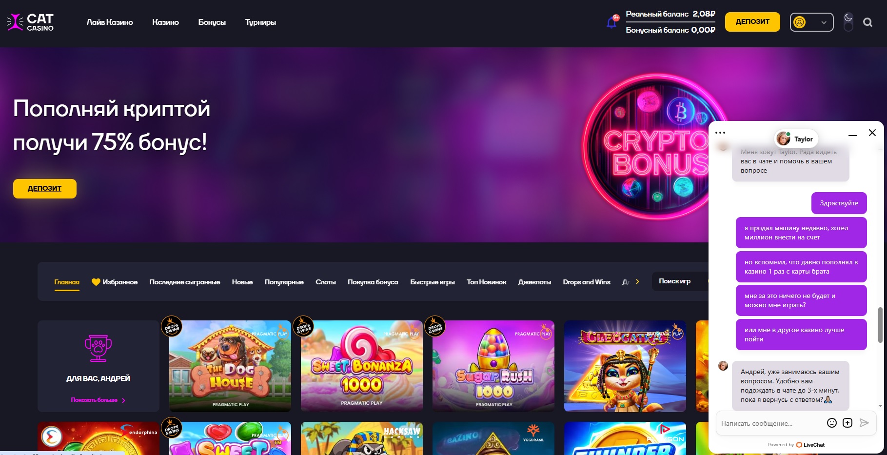Cat casino мошенники. Не выплачивают выигрыш 5400000