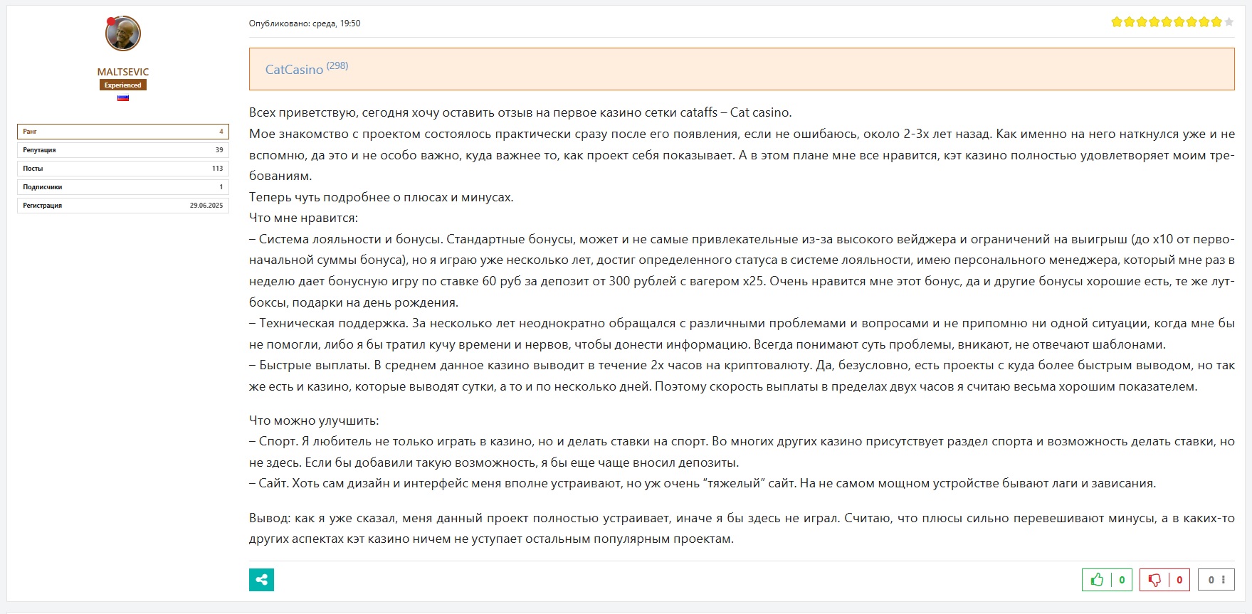 @gans2115 1вин вообще уникальные ребята, вывод 1500 руб ждал почти неделю, тупо висит заявка и игнор на почте) Хуже конторы не видел. А про котов смотрю много плохих отзывов, но сам лично проблем с ними не имел, хоть и зареган во всех казиках их сетки, суммы до 100к выводил без проблем, а больше и не фартило занести
