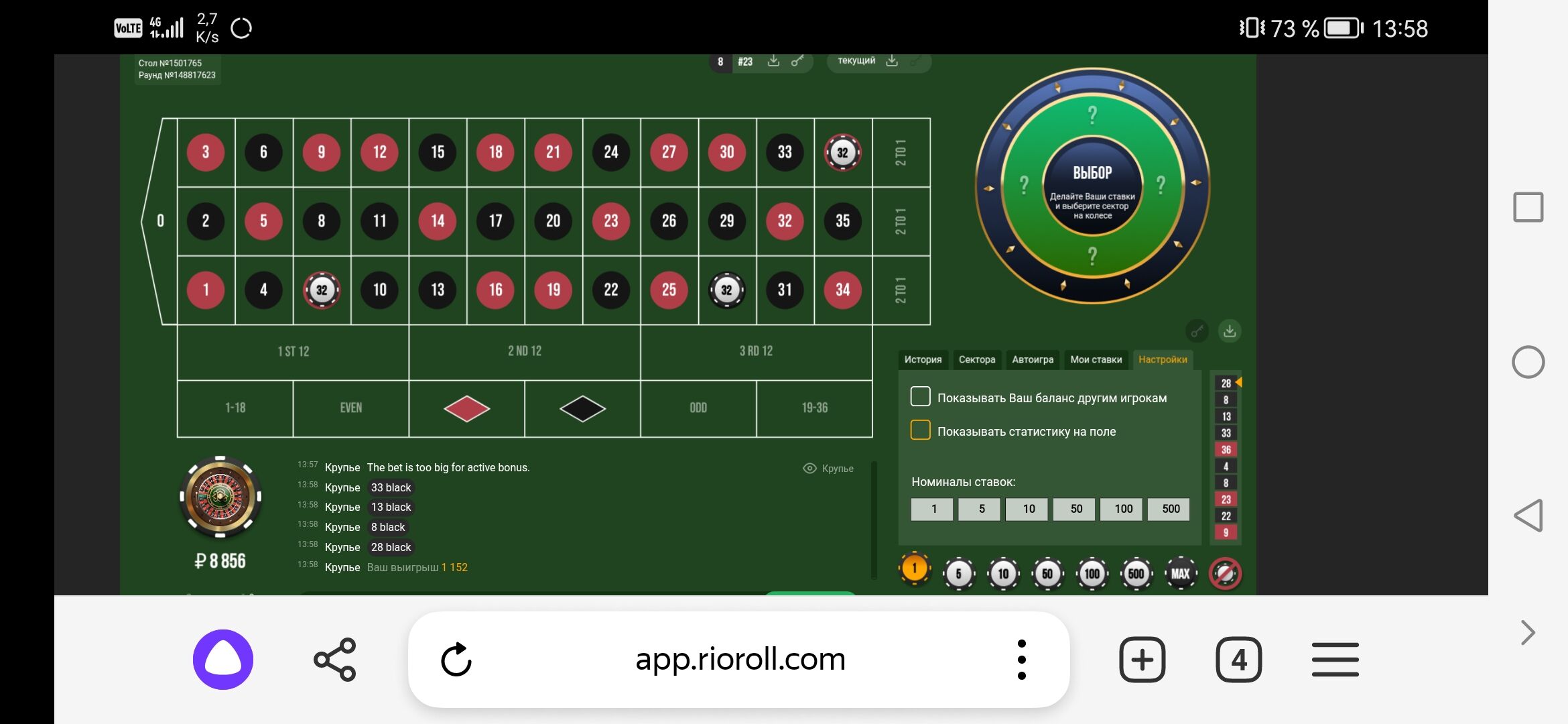 Может расскажешь, какой % сейчас казино идет в зачет отыгрыша на рулетке, неужели 100%, как в слотах) Мне помнится было, как то 50%. потом давали 30% и наконец запретили отбивать на руле бон. Хотя играть можно было и если «фартило», то увеличивал балик… Потом стало не интересно)