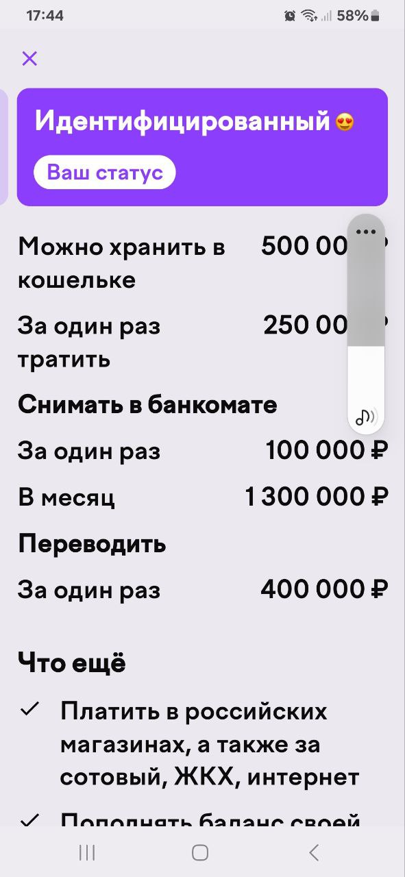 На счет Ю-Мани давно его регал еще до озона. Именной был. Щас вот из-за проблем с озоном решил ю-мани посмотреть еще. Зашел а там переводы по сбп низя без полной идентификации. Залез в нее. А там по гос-услугам можно. Кликнул пару раз. Оп. Полная идентификация.